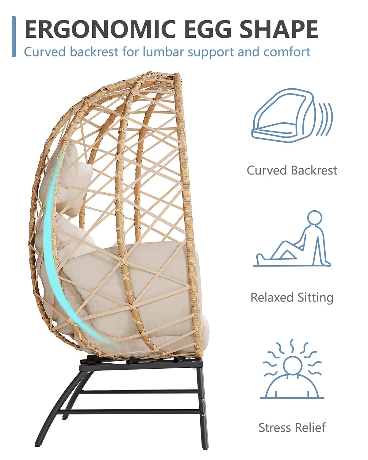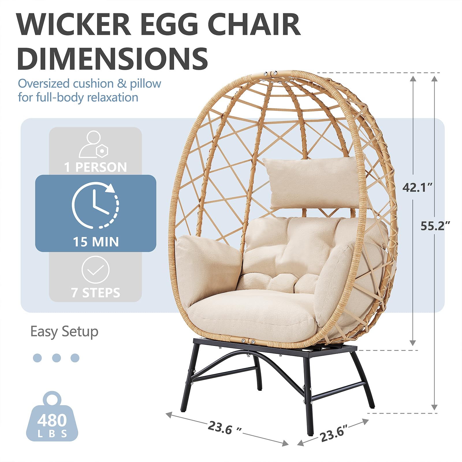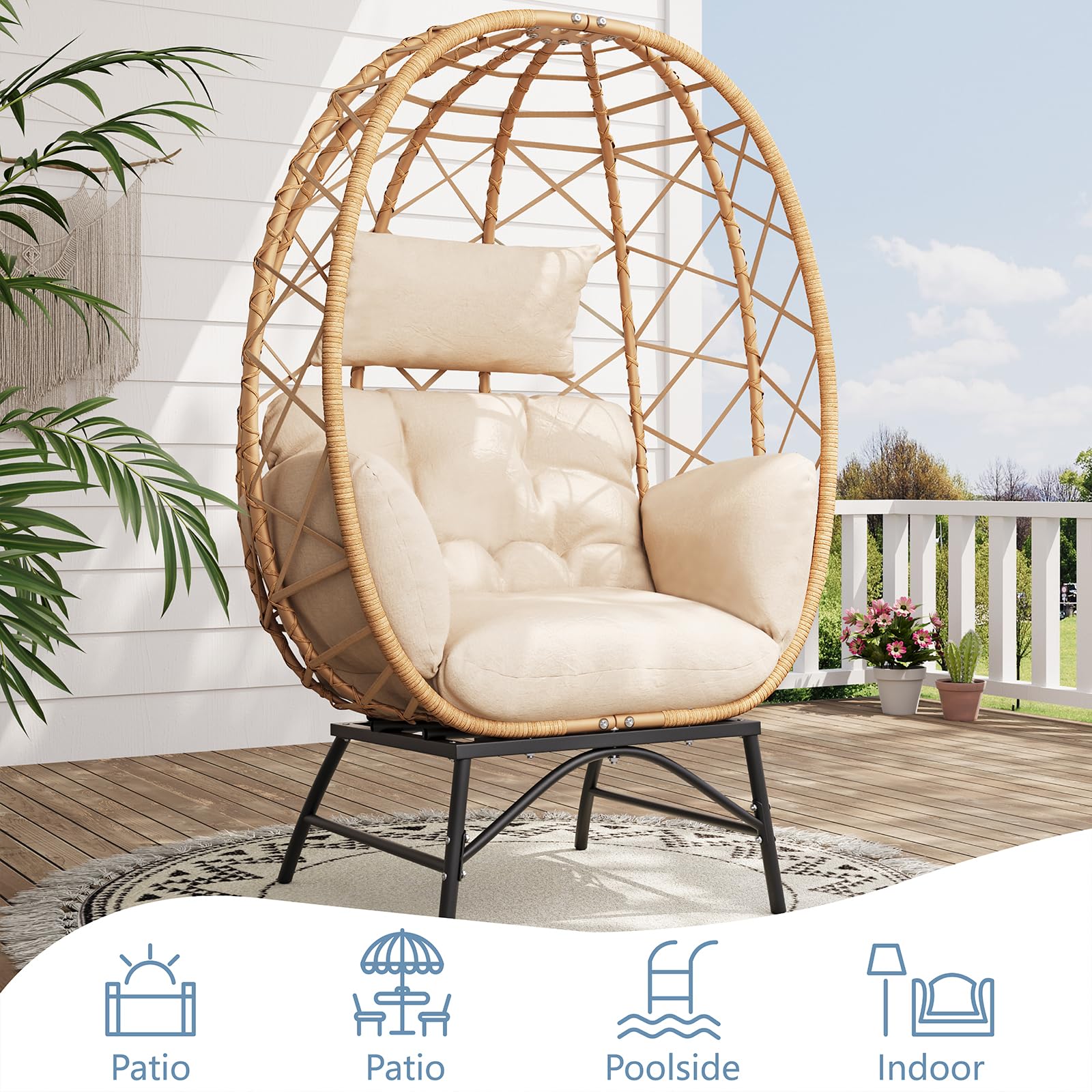 STABLE & STRONG: Built with a powder-coated steel frame and four-legged base, this oversized egg chair outdoor supports up to 480 lbs, providing a secure and wobble-free seating experience