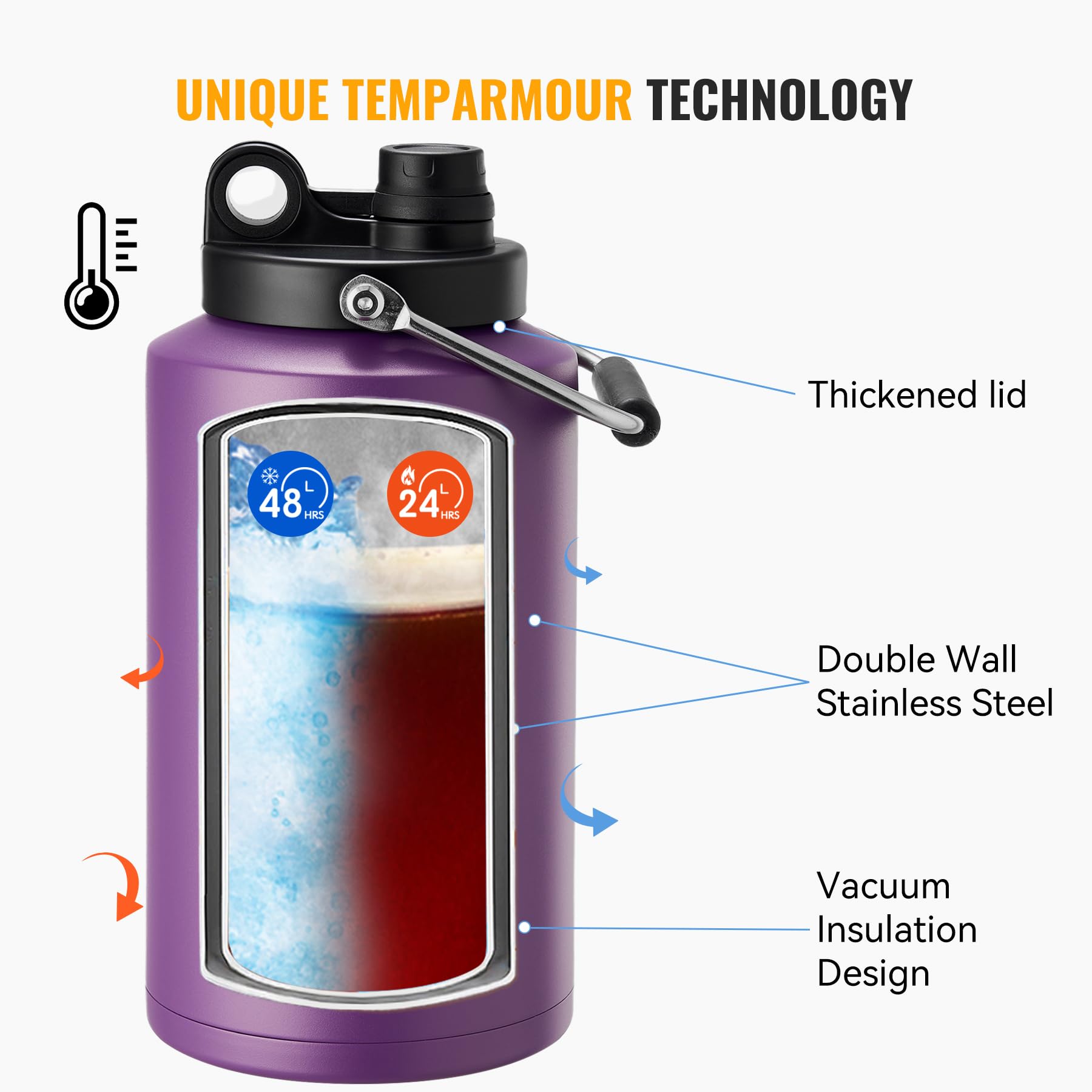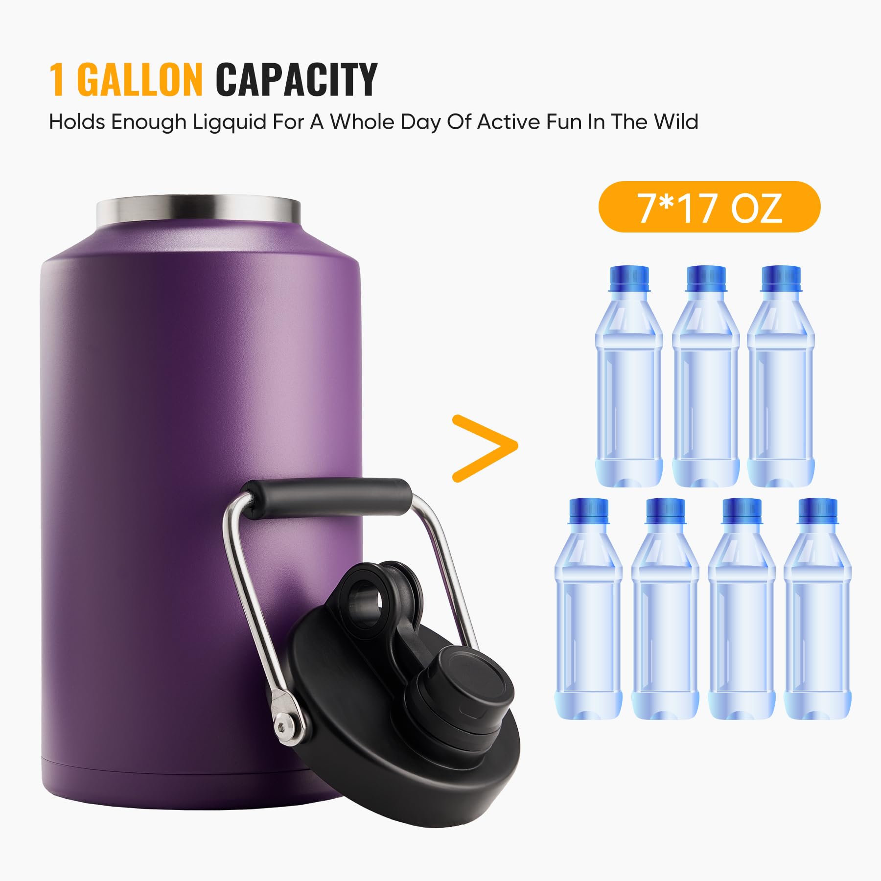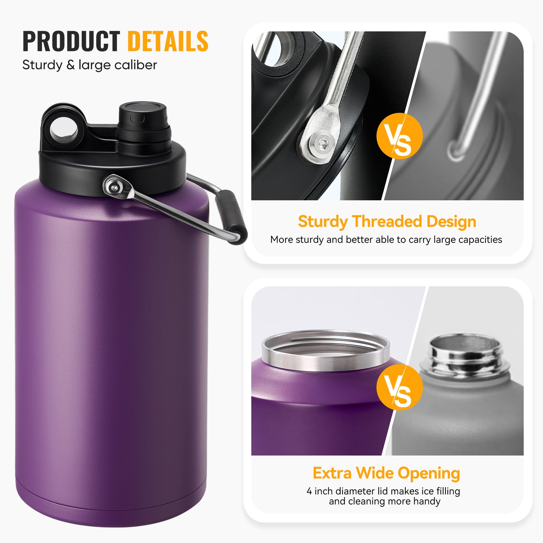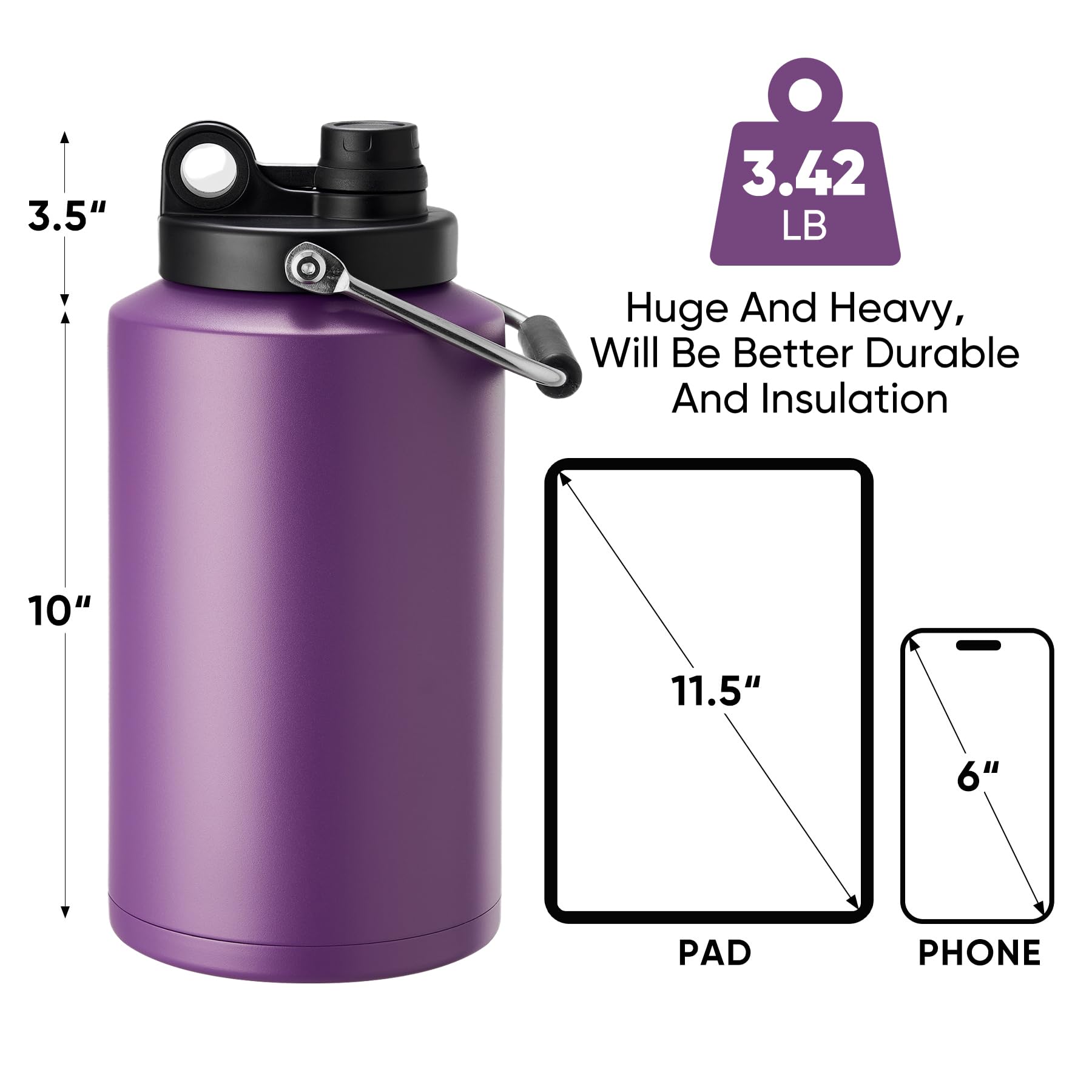 💧VACUUM INSULATED: Double layer vacuum insulated kettle, keeps the liquids icy for up to 48 hours or piping hot for up to 24 hours.This gallon water bottle is made of Powder-coat sweat-free technology, bottle grabbing becomes easy in time after strenuous exercise.