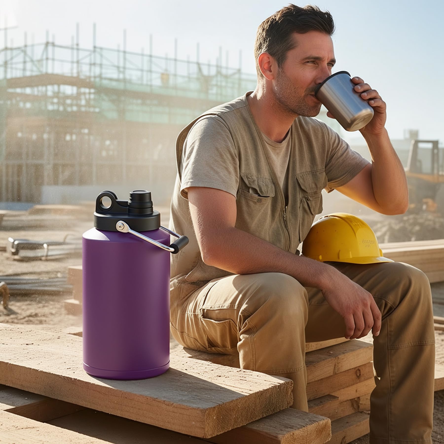 💧PREMIUM MATERIAL: Our 1 gallon Insulated watter bottle is made of 100% non-toxic BPA-free plastics, durable food-grade 18/8 food-grade stainless steel.It will never leave a metal taste or rust.