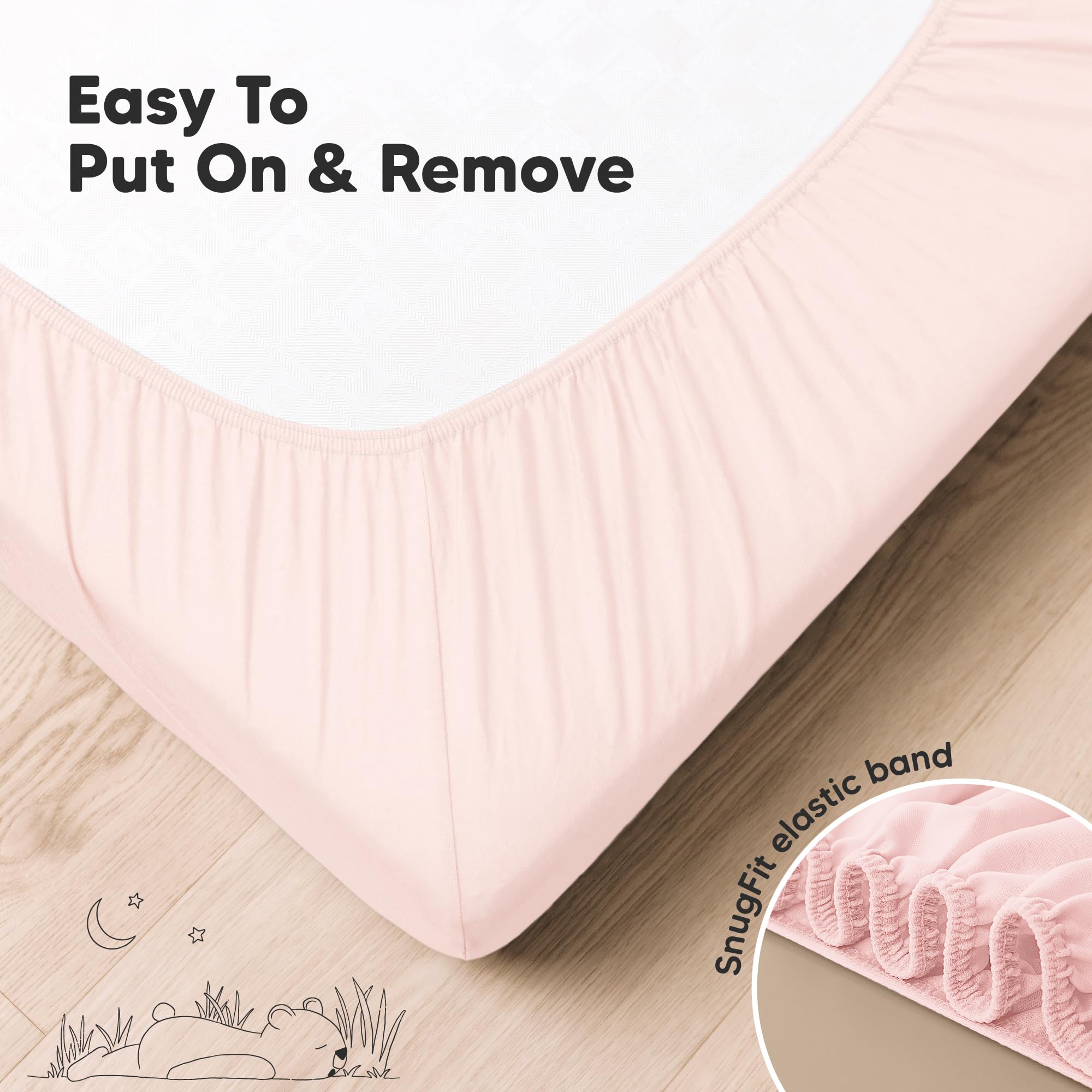Easy To Put On - Our baby sheets for crib use SnugFit Tech, a smart fabric knit that stretches effortlessly for quick fitting and removal of the toddler bed sheets. No more struggling with rigid fabric!