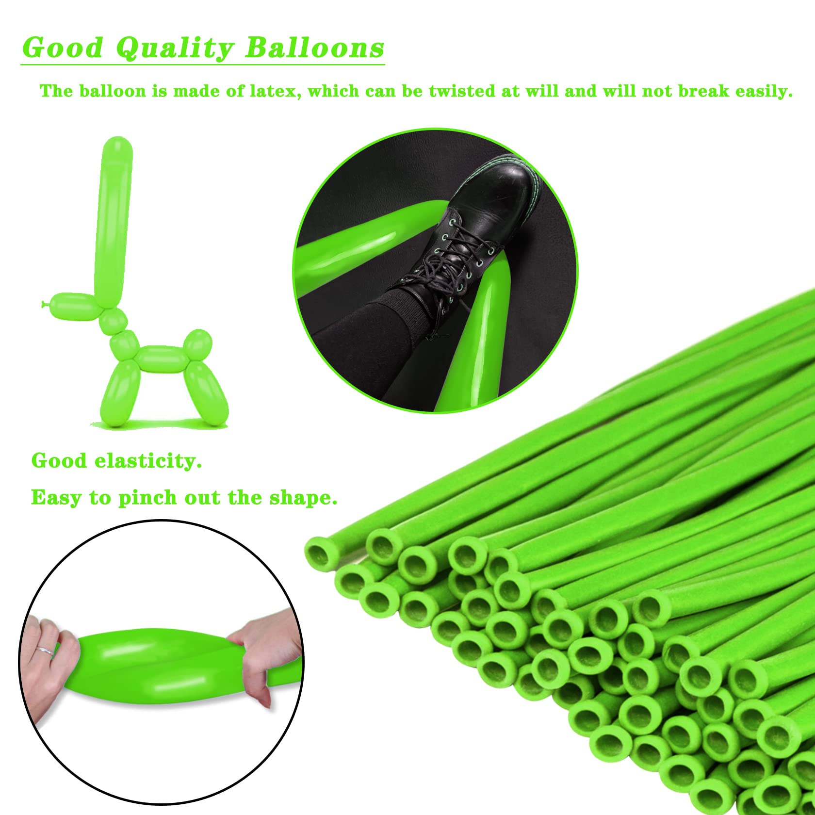 ✮【Size Information】The green twisting balloons length is 12 inches, it can be inflated to 47-53inches length, Please be careful not to expand the twisted balloon to its maximum length; When inflating, Please leave some space to avoid blowing up when twisting.