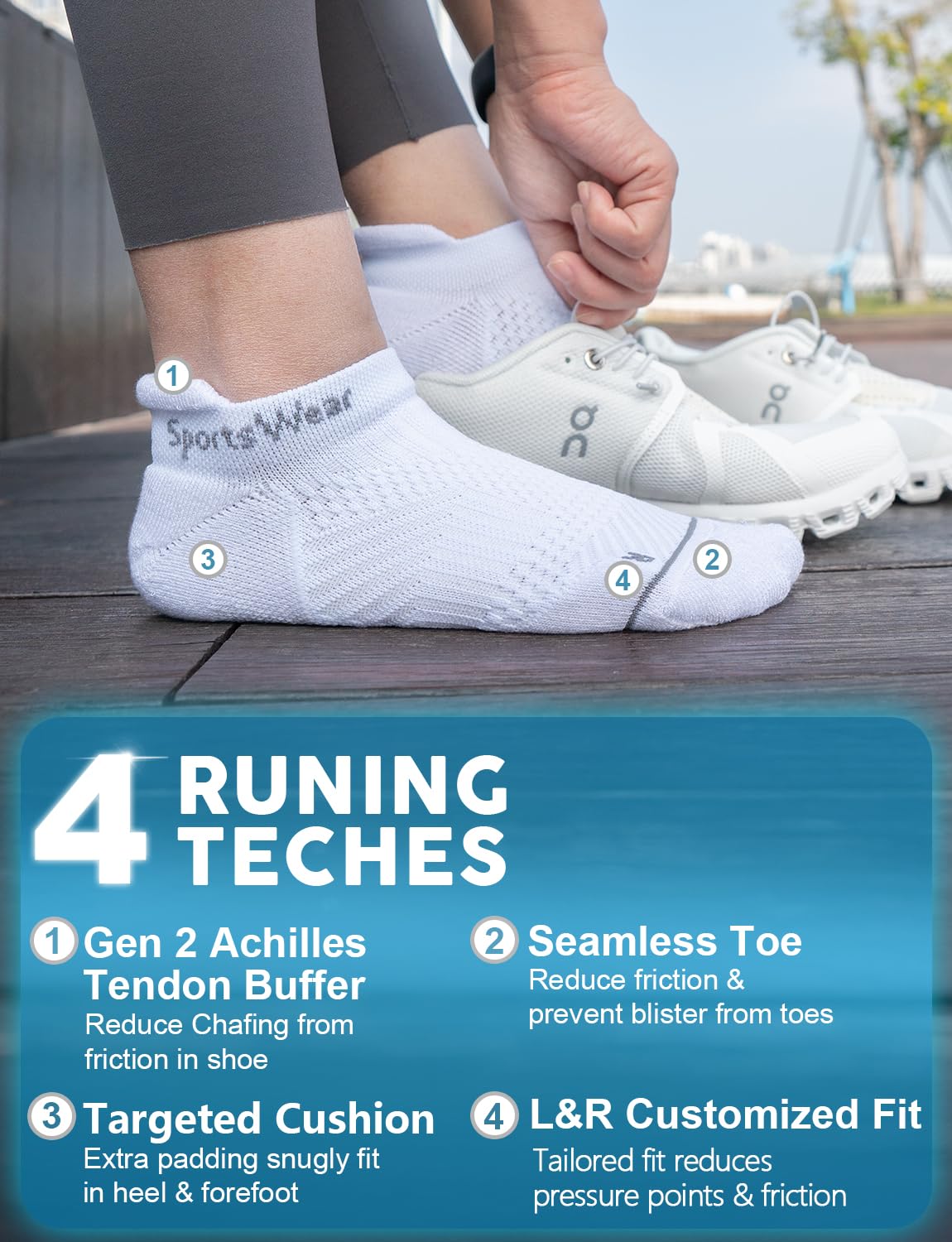 【Innovative Anti-Blister Design】: Engineered with reinforced padding at the heel and forefoot to protect against shoe friction. Includes seamless toe closure, targeted cushioning, ankle protector, and Achilles tendon buffer to prevent blisters and ensure a smooth, irritation-free run.