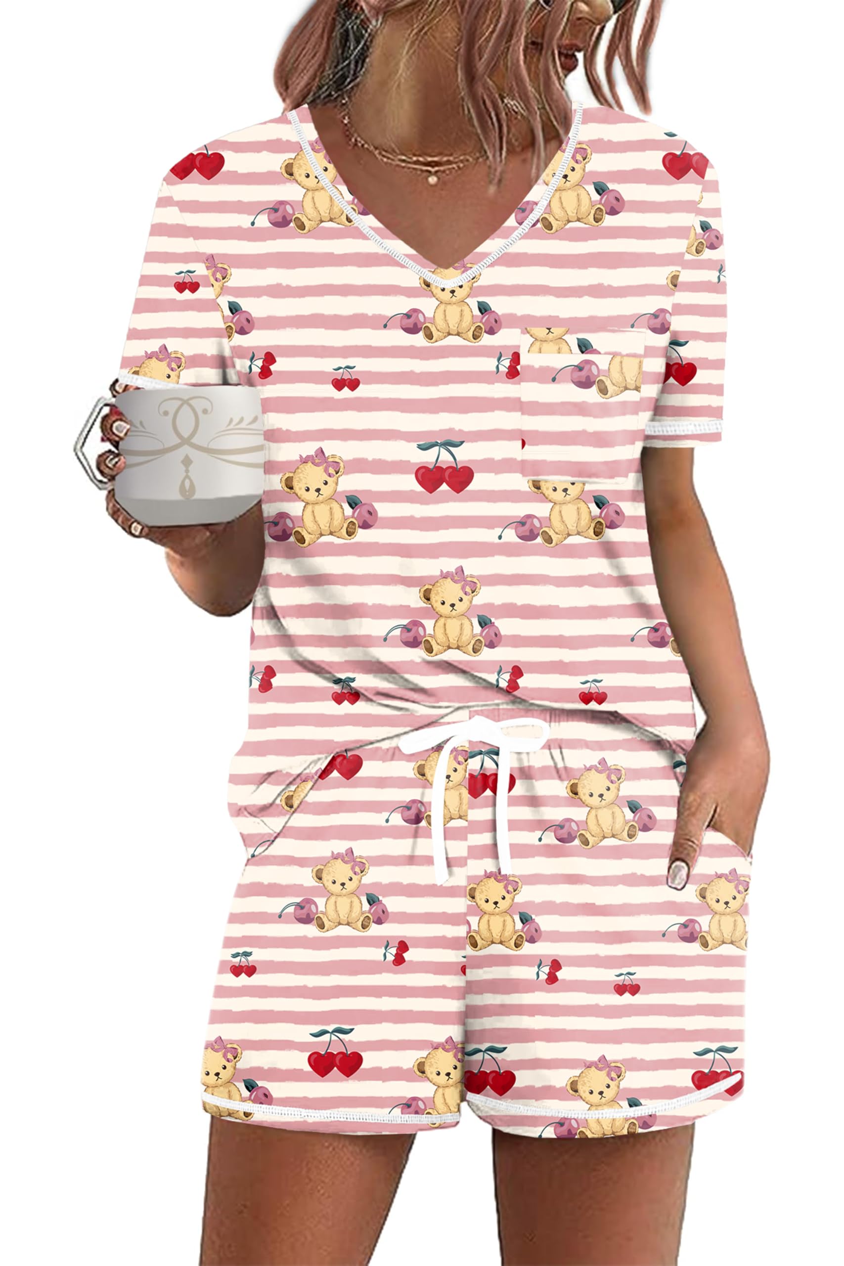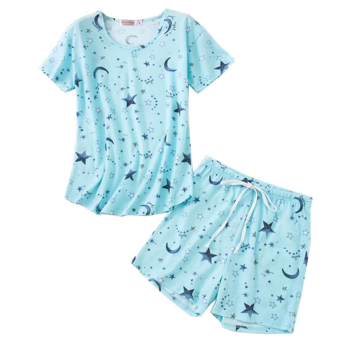 Design: The pajama top features classic chest pocket and V neck, with exquisite hemming workmanship; the pajama shorts features adjustable drawstring and pockets. Loose fit lounge sets, cute and comfy pajamas for women and teens girls