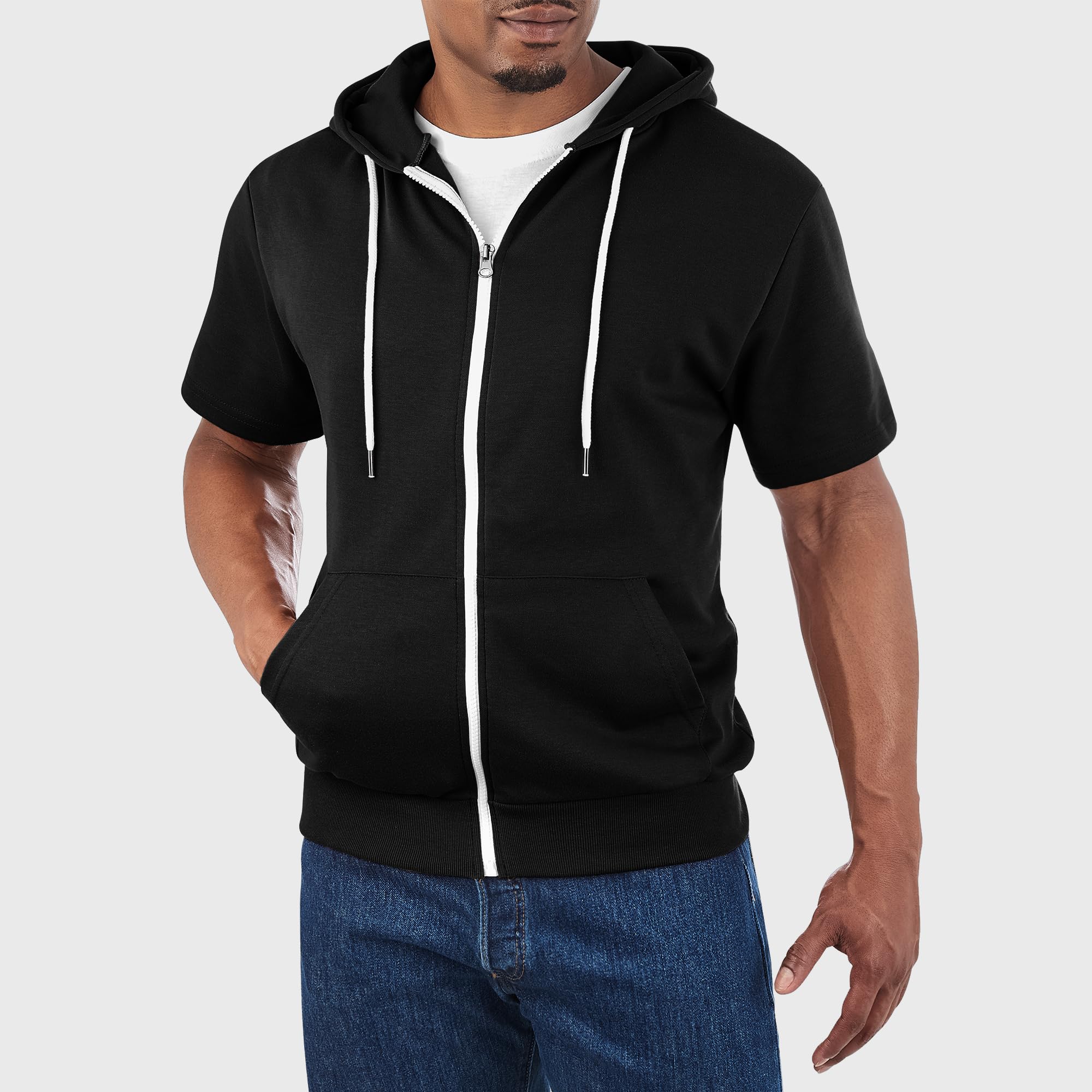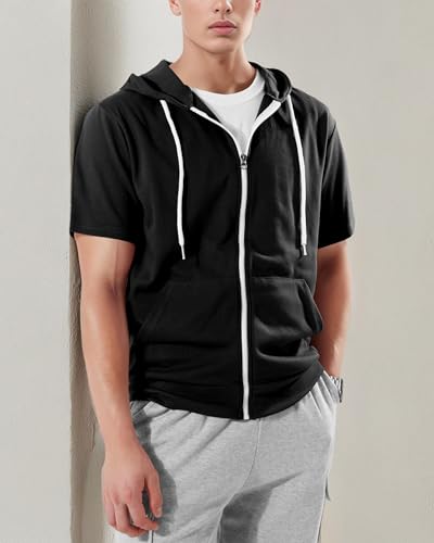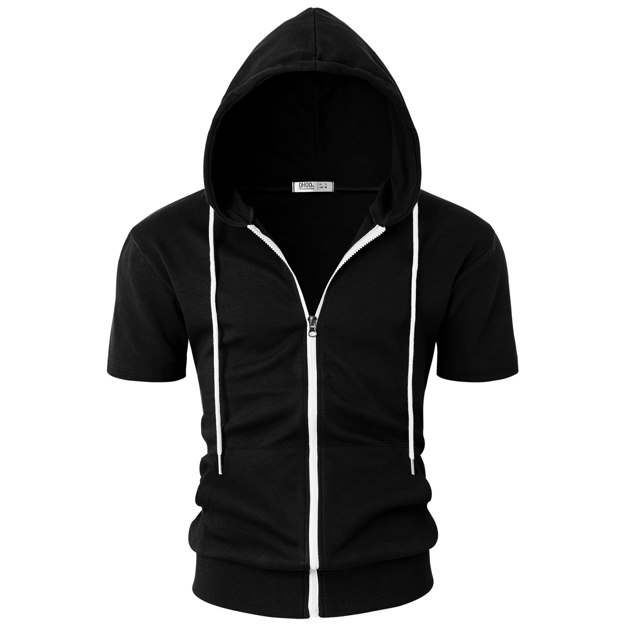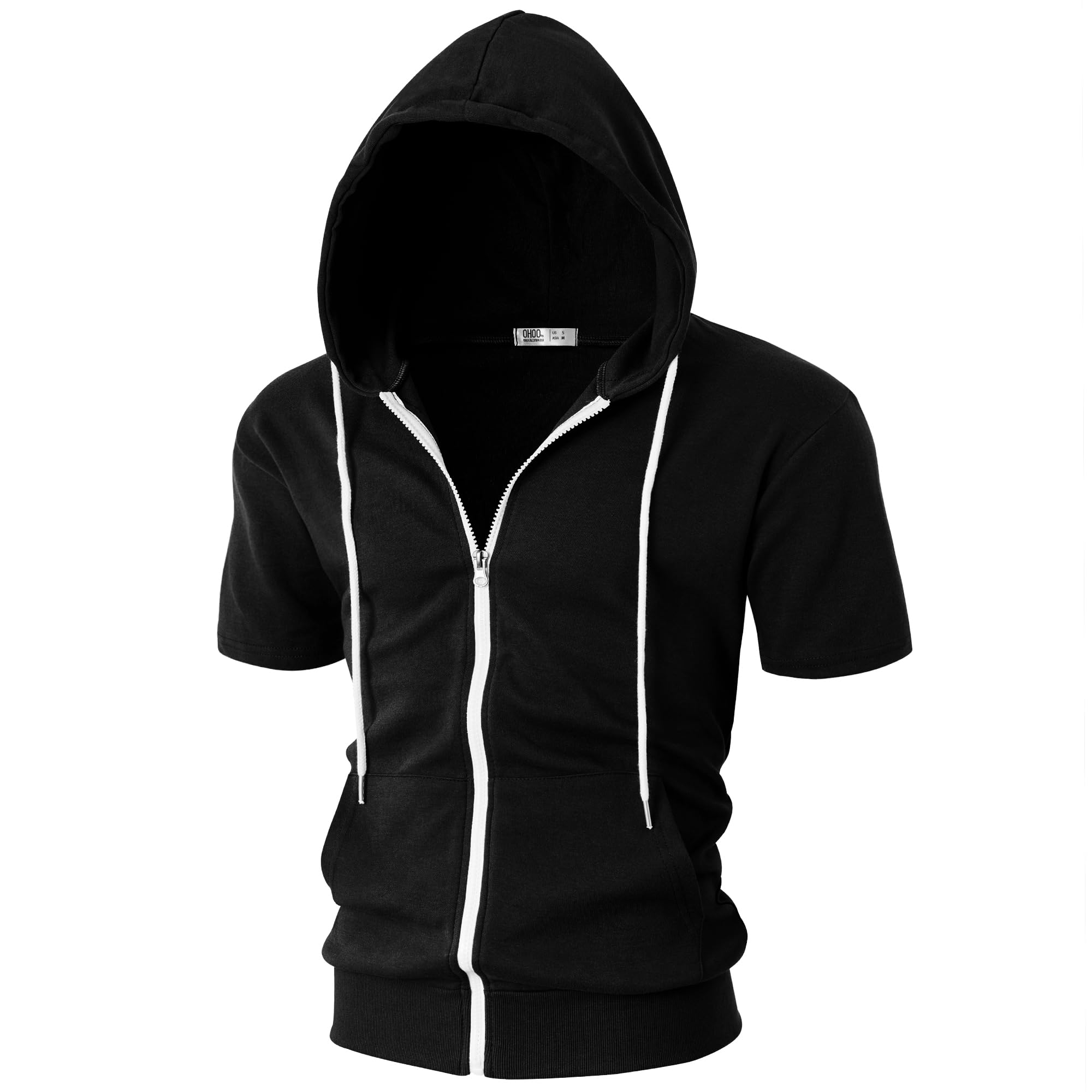 Model Number DCF007: Modern Slim Fit, Lightweight, Short Sleeves, Kangaroo Pocket for Convenience, Contrast Color Design (White Zipper/Drawcord)