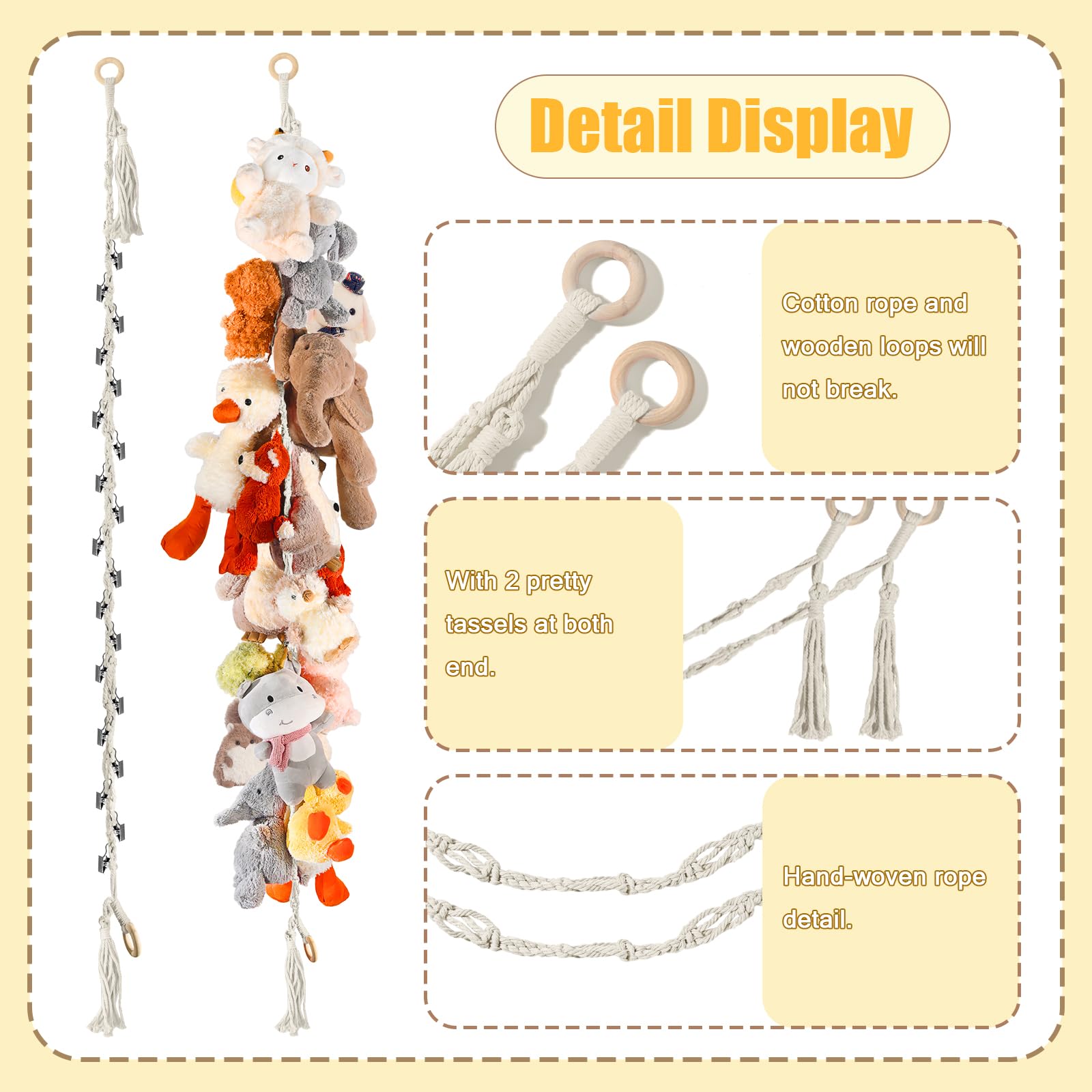【Handcraft】Stuffed animal chain is made of premium cotton rope and wooden rings for a rustic look, paired with unbreakable metal clips that hold shape over time.
