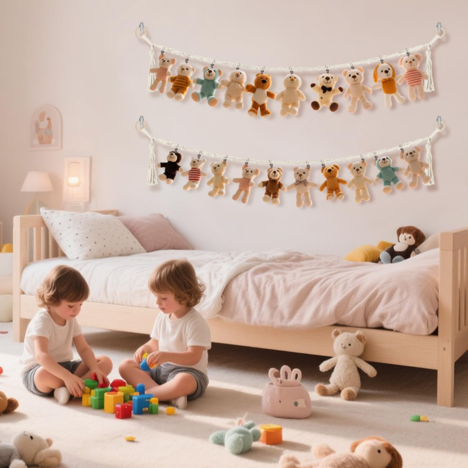 【Boho Chic Decor】Stuffed animal net doubles as stylish bohemian wall art, adding cozy charm to nurseries, bedrooms, or playrooms, great for kids room decor.