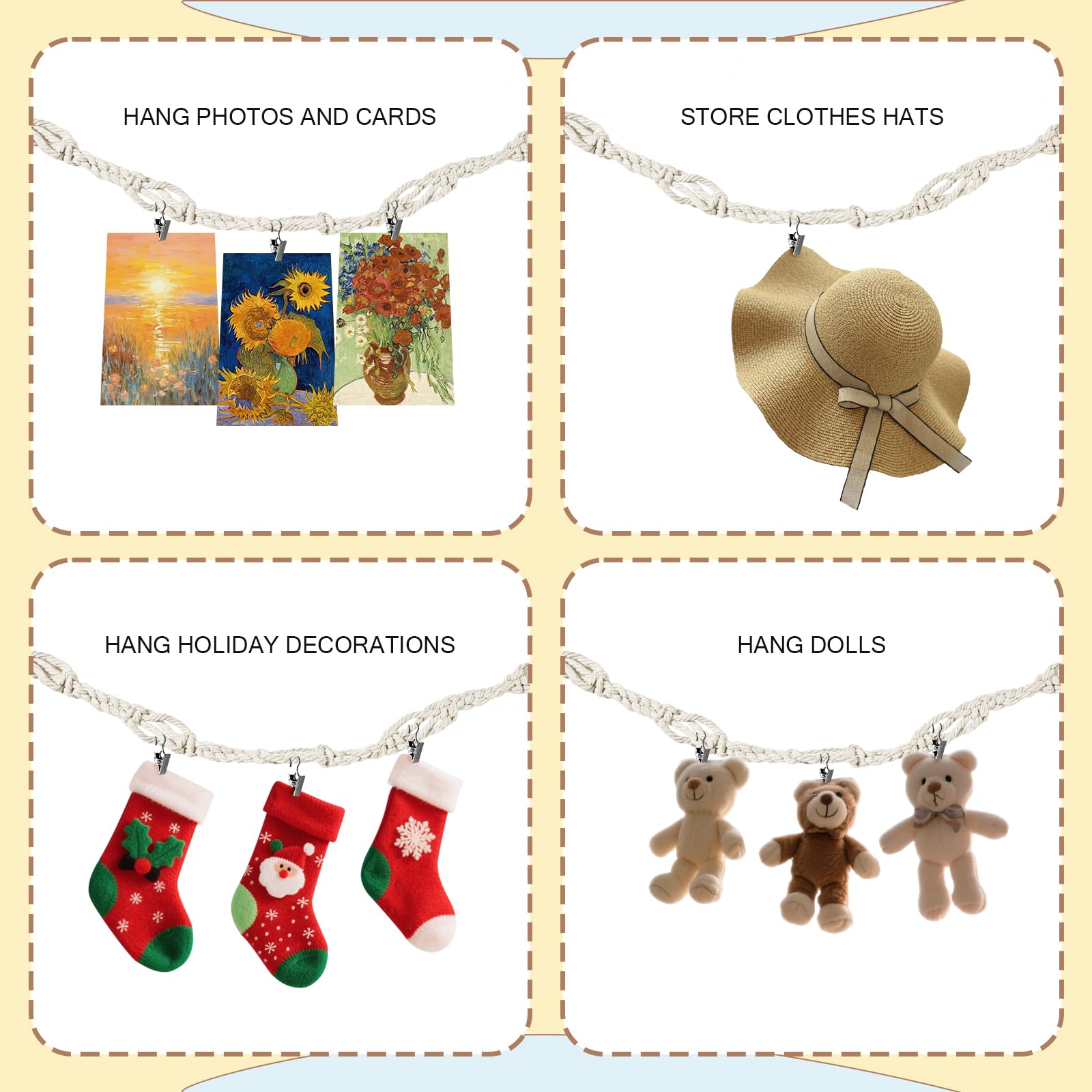 【Large Load-Bearing】Stuffed animals holder can bear up to 20 plush toys, photos, hats, and more with sturdy metal clips. Perfect for stuffed animal organizer and display!