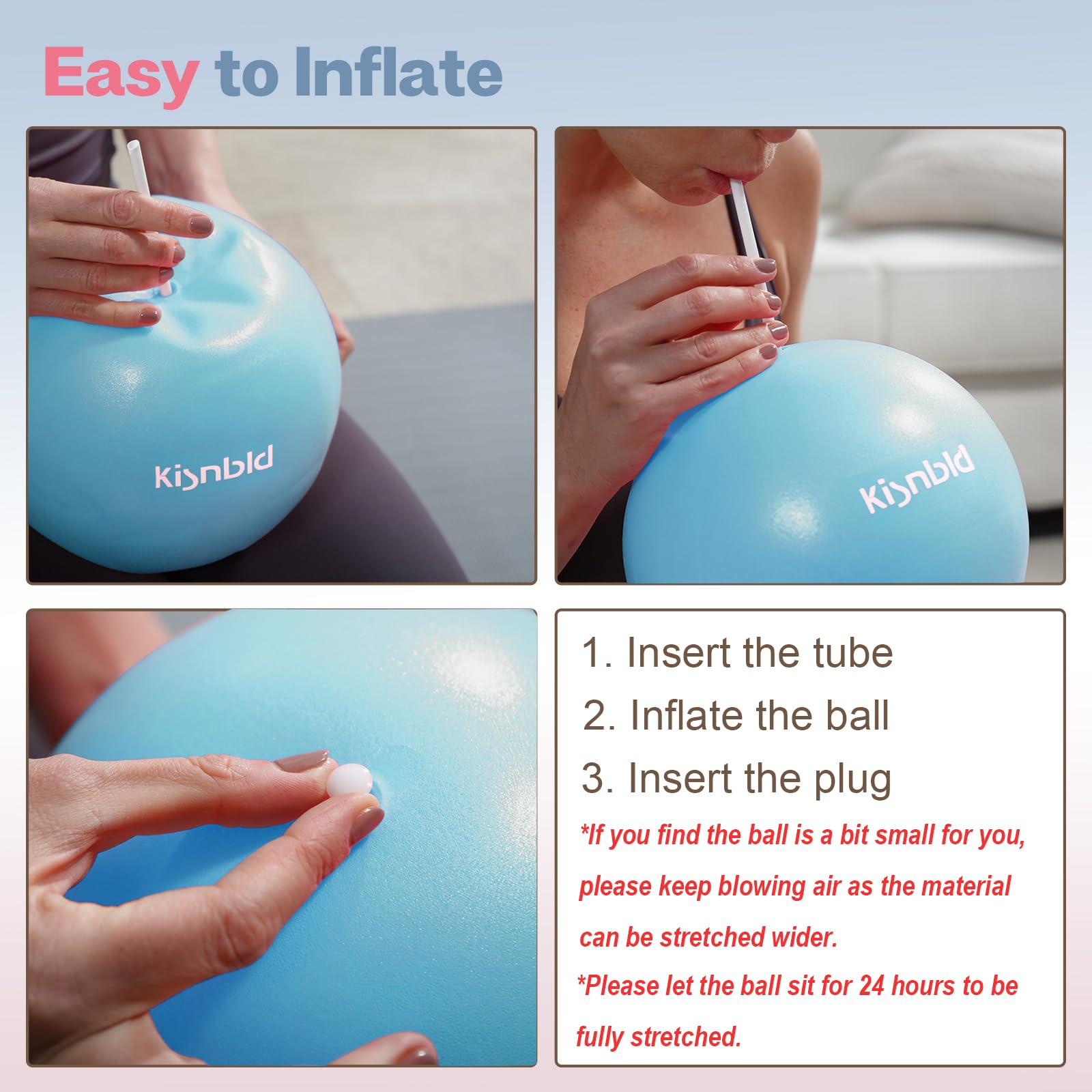 𝐊𝐈𝐒𝐍𝐁𝐋𝐃 𝐏𝐈𝐋𝐀𝐓𝐄𝐒 𝐂𝐎𝐑𝐄 𝐁𝐀𝐋𝐋 - We are committed to meeting the satisfaction of every customer and serving you all wholeheartedly! If you are upset about our product for whatever reason, please let us know, and we will gladly provide a solution for you. NOTE: Please keep the ball away from woodwork, wooden furniture or painted walls because the exercise ball is unfriendly to the wood or painting.