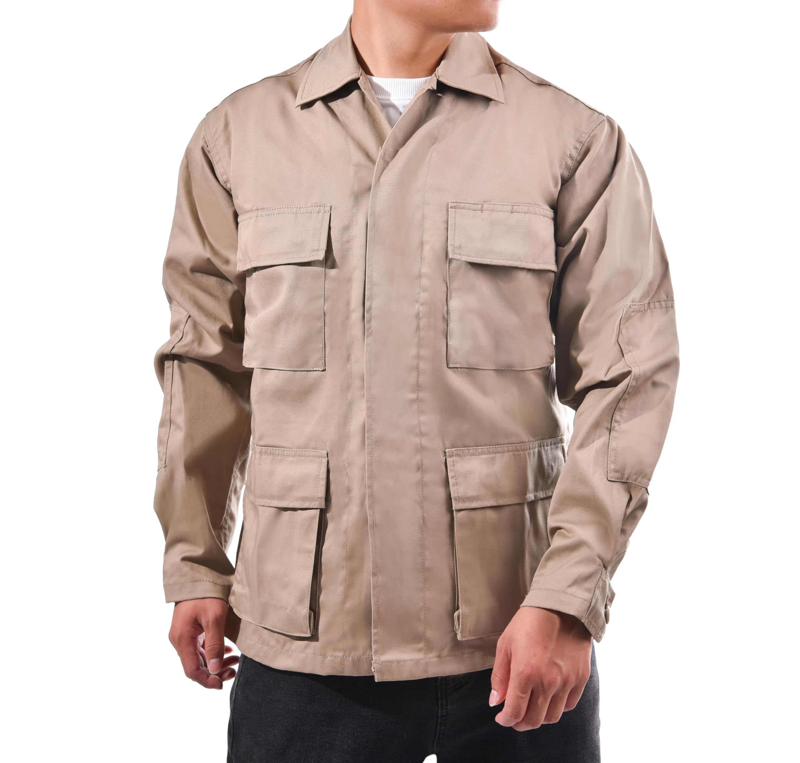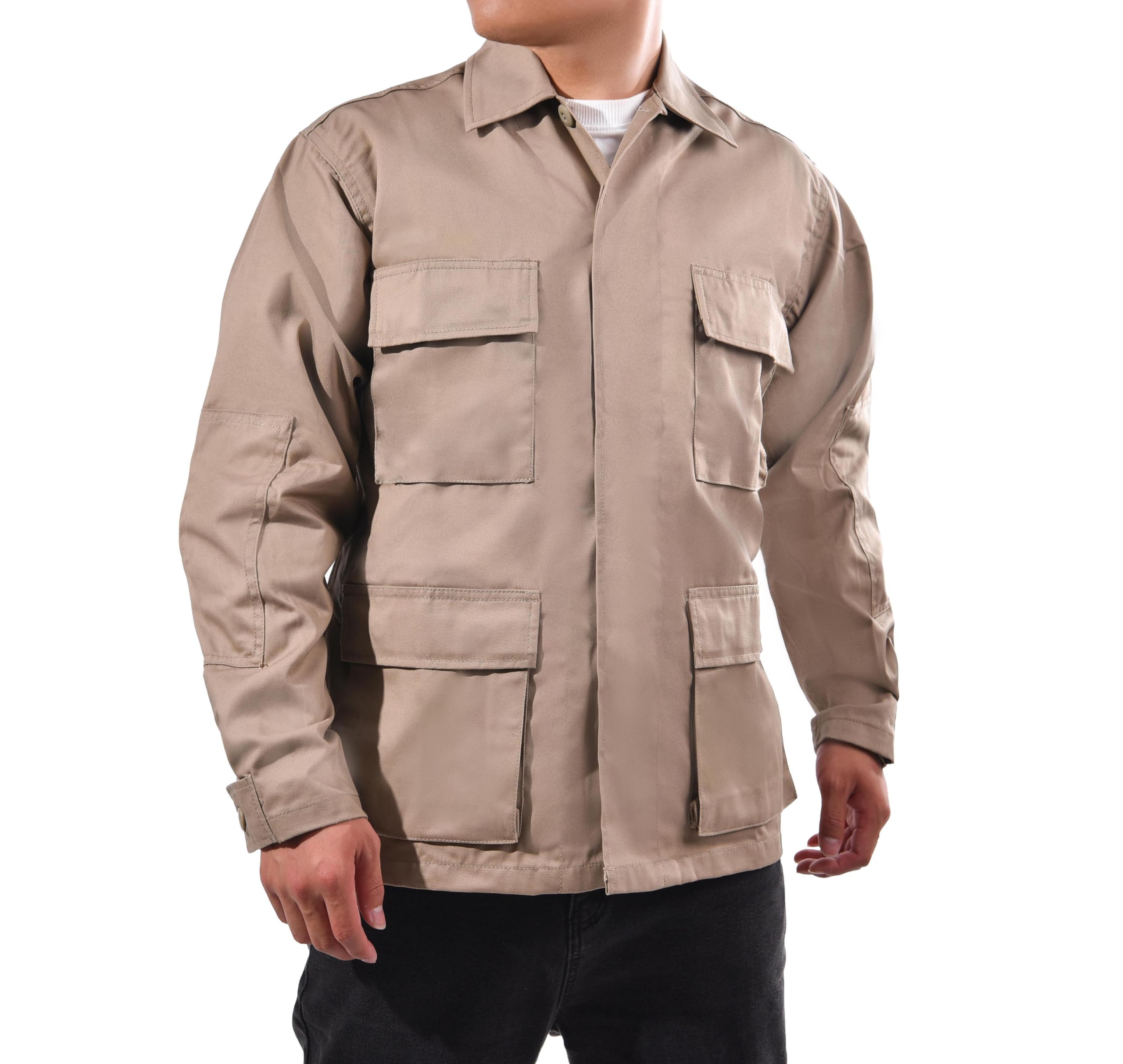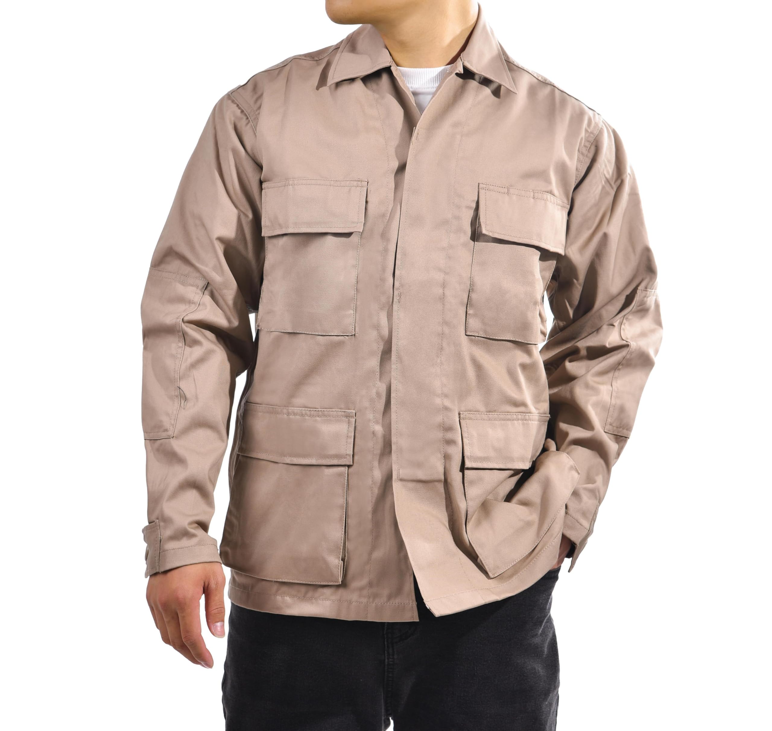 Description Cotton / Polyester Twill Woven Fabric, Four large button pockets with flaps, Cuff with adjust tab and buttons, Please kindly check the sizes and measurement below before your purchase; ***This Shirt is quite big, please kindly check size table before you buy*** Please note: Chest measurement is made from 1 inch down from the armpits; Size S : Chest = 46 inches (116cm), Length = 29.5 inches (75cm); Size M : Chest = 48 inches (122cm), Length = 30 inches (76.5cm); Size L : Chest = 52 inches (132cm), Length = 30 inches (76.5cm); Size XL : Chest = 58 inches (147cm), Length = 30.5 inches (77.5cm); Size 2XL : Chest = 60 inches (152cm), Length = 31 inches (78.5cm);