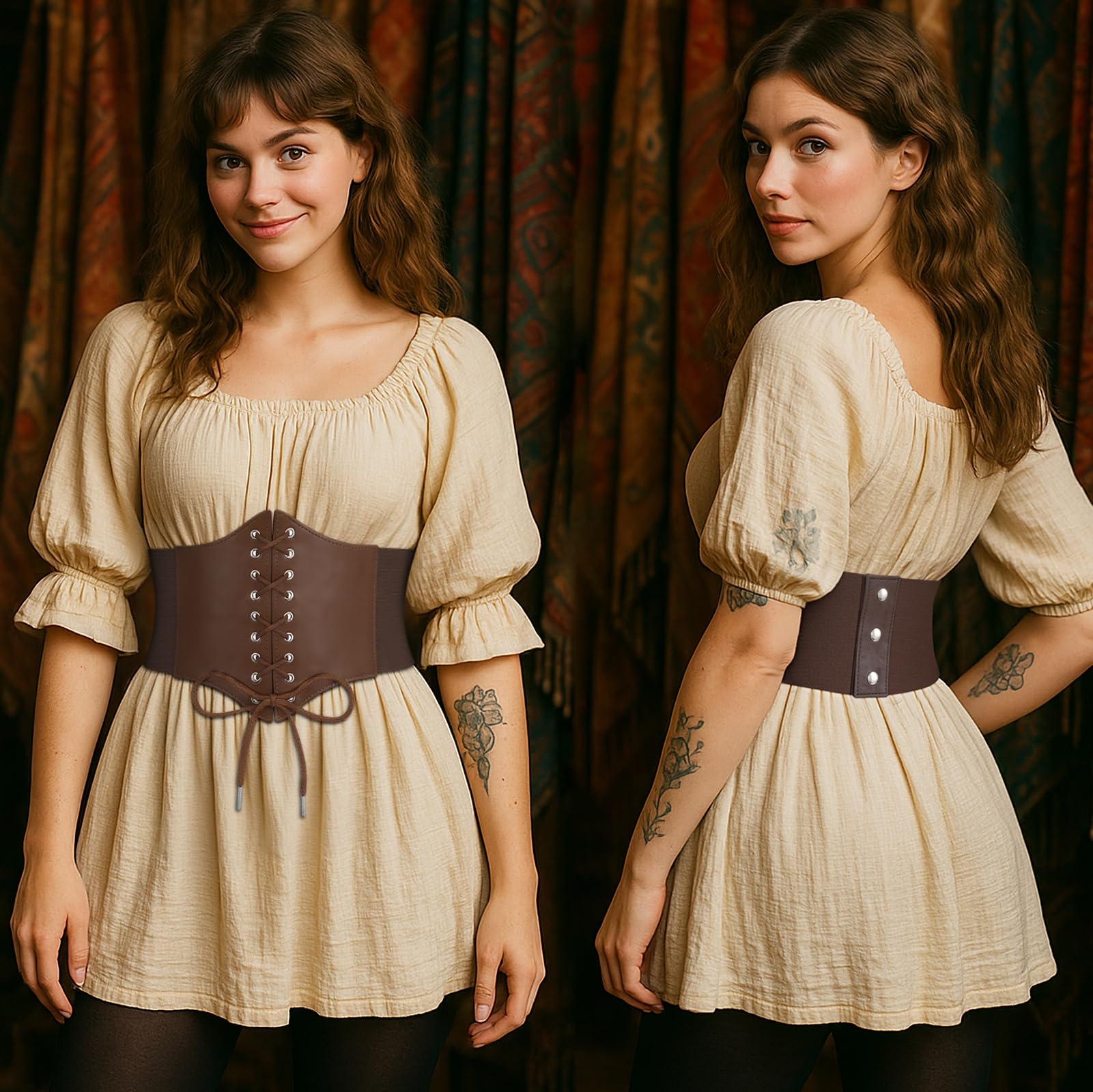 ➜ Fancy Leather Belt for Costumes: Ideal for wearing with oversized shirts or dressy wear, such as the dress for princess Renaissance, Halloween Party, Masquerade, Gothic, rock, cosplay