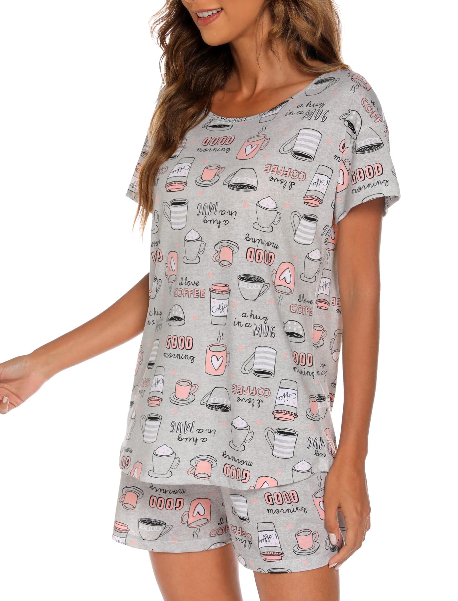 Comfy Material: Made of 60% cotton, 40% polyester, soft, non-irritating, superbly breathable, offers gentle give while maintaining its shape, summer pajama short sets bring you comfy skin touch feeling.