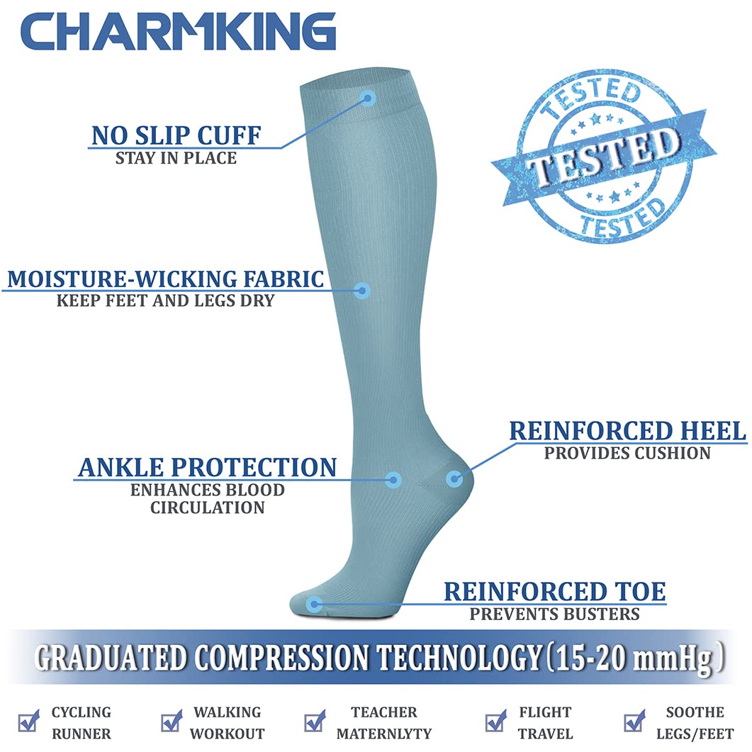 COMPRESSION SOCKS - We intend combining fashion, technology and science to bring you the triple comfort without. The material of our compression socks are upgraded with nylon percentage from 40% to 85%. Delivers 360-degree stretch for greater flexibility and durability. Breathable high performance fabric keeps an optimal temperature.