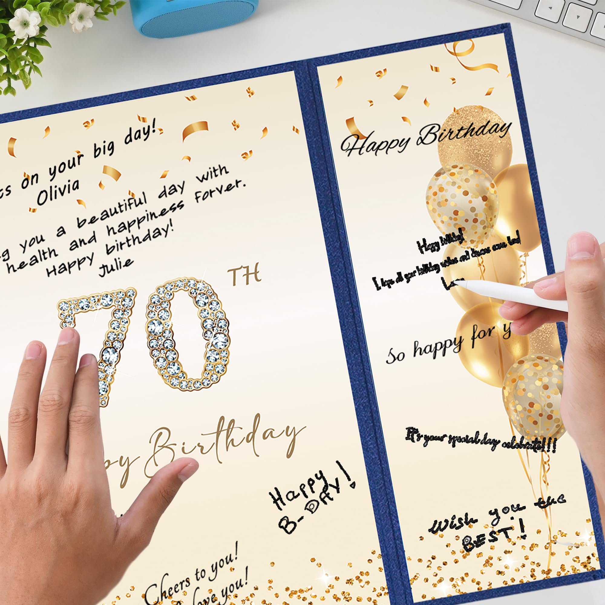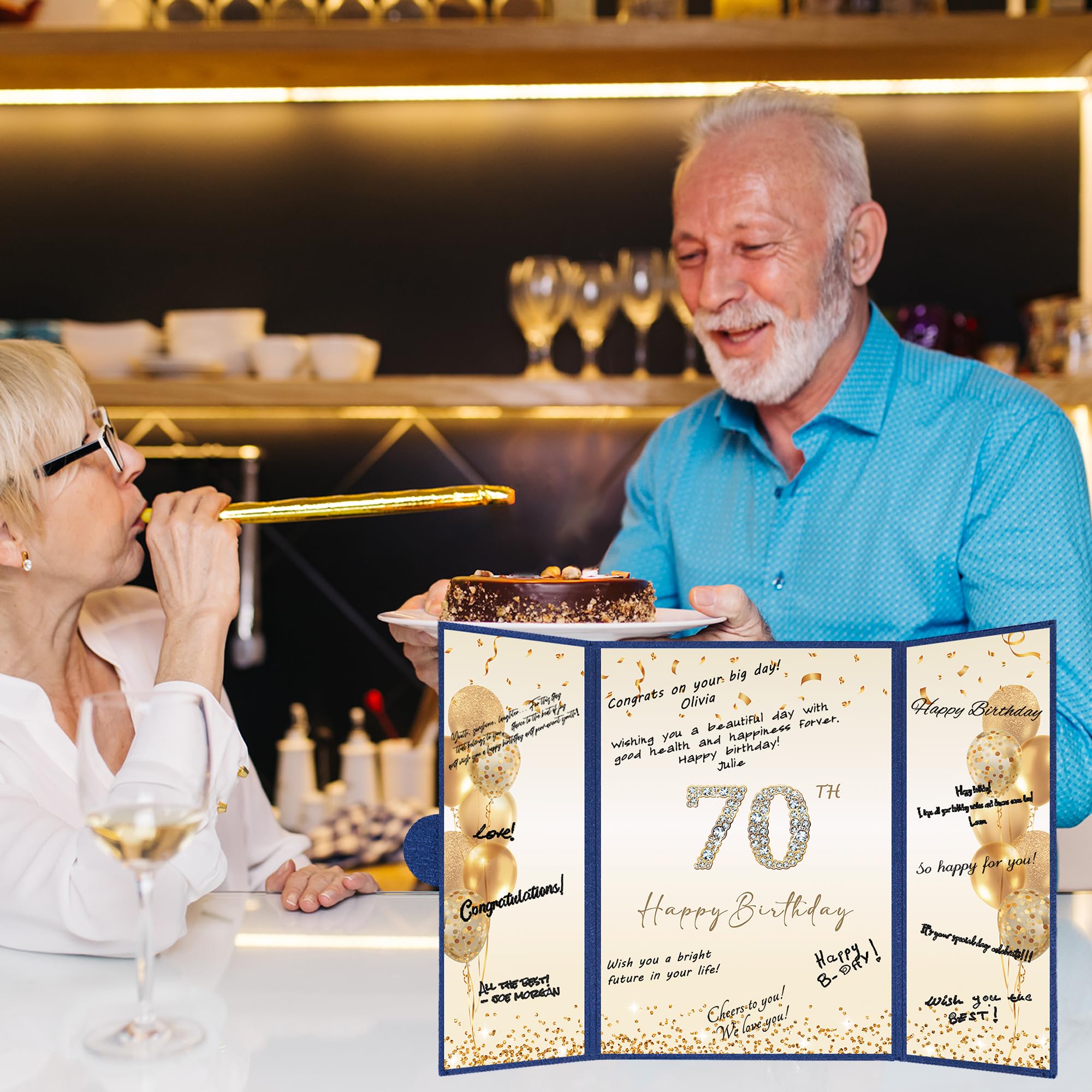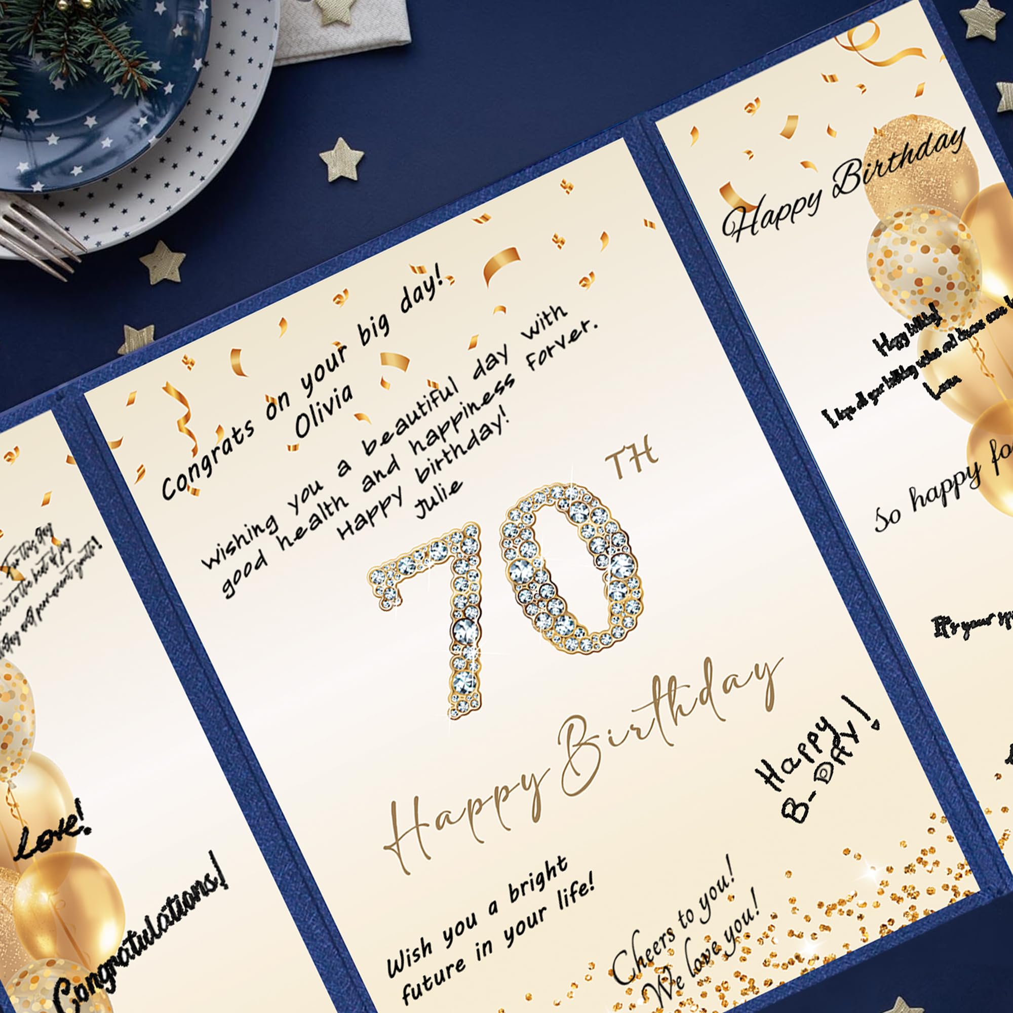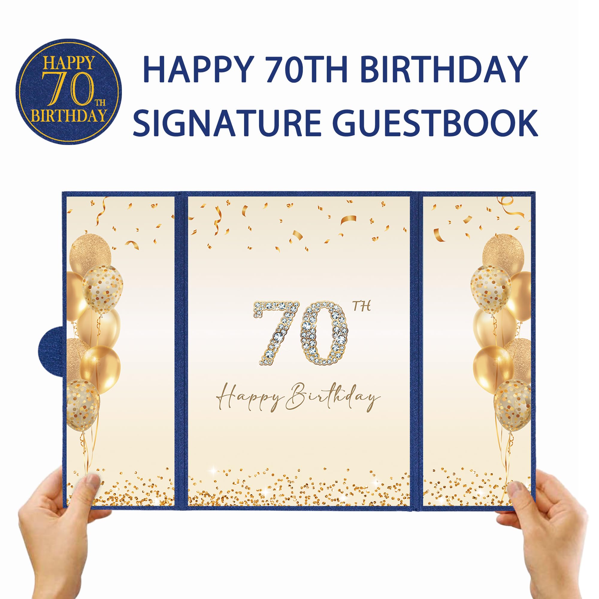 【Package Included】 - You will get a blue Happy 70th Birthday signature guest book(without pen). It doesn't need to assemble and is a practical tool to sign the names or blessings of the guests at the 70th birthday party. It is durable and suitable for long term storage for you, your friends or family beautiful memories. It will not fade for years, perfect for writing, durable, suitable for long term storage. You can look back over time at your amazing creation.