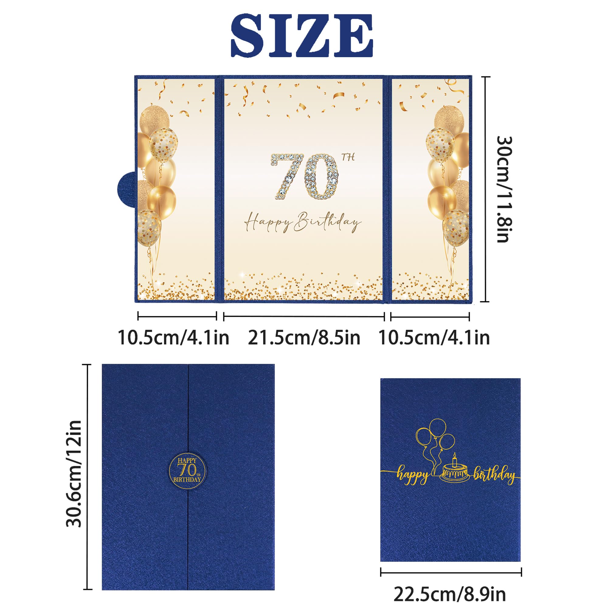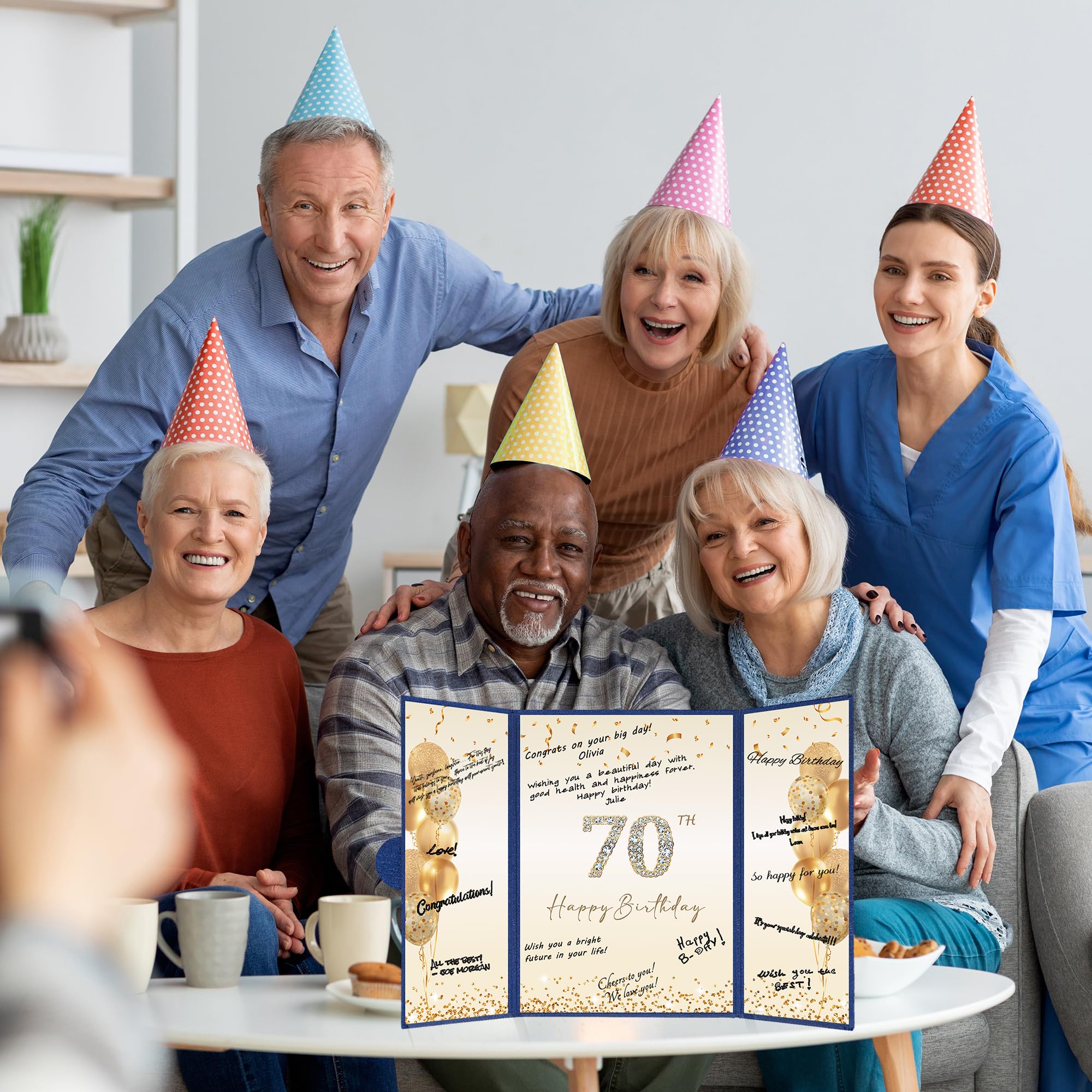 【Perfect Size】 - The cover of Happy 70 Birthday signature sign is approx. 45.6 x 30.6 cm/ 18 x 12inches; the left and right inner page is approx. 10.5 x 30cm/ 4.1 x 11.8inches; the middle inner page: approx. 21.5 x 30 cm/ 8.5 x 11.8inches. It is a fun party decoration idea for the 70th Birthday. You can make your keepsake unique and keep them endlessly.