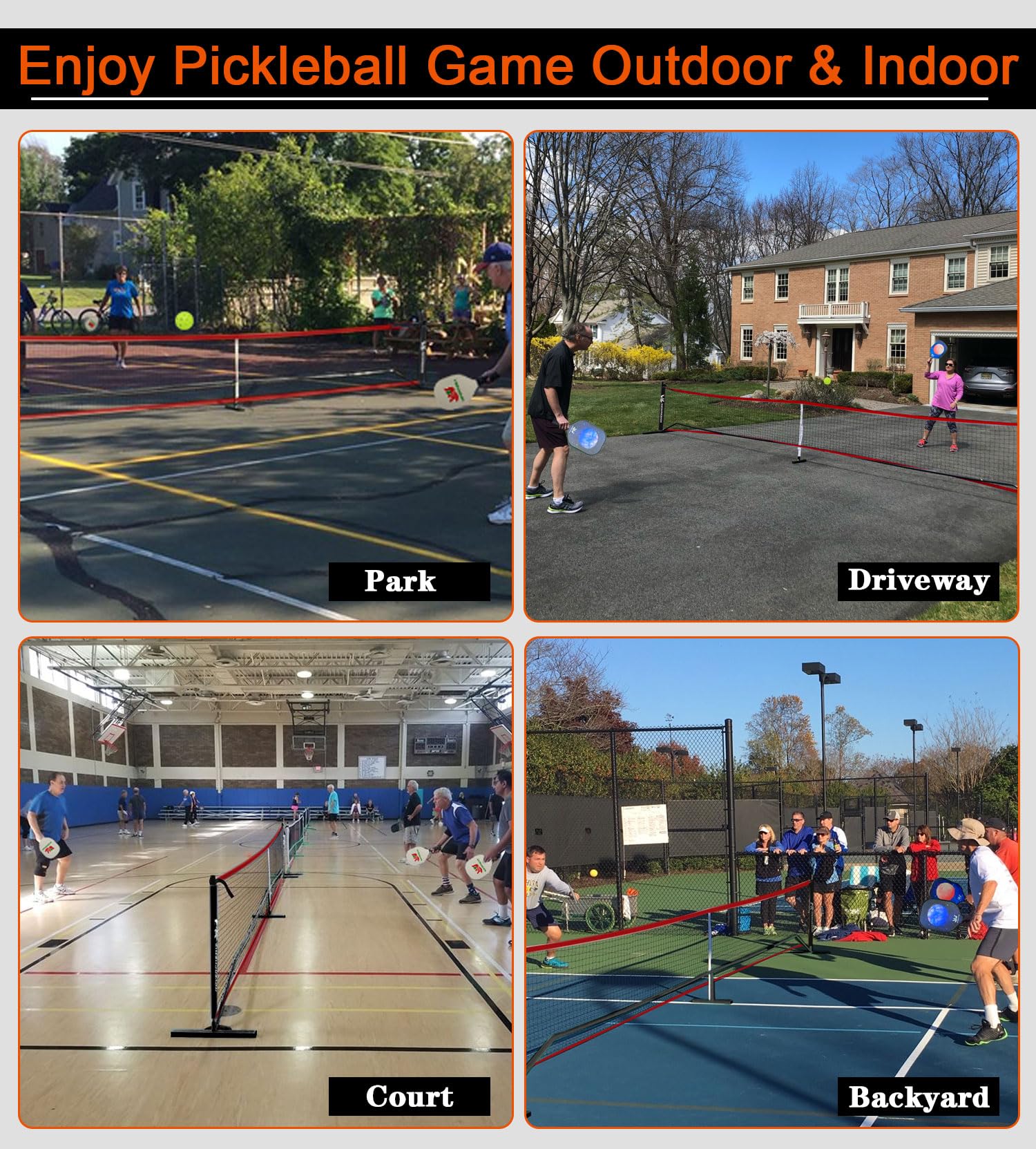 VERSATILE GAME PLAY ANYWHERE - The pickleball net is versatile and can be set up indoors or outdoors. Whether you're in your backyard, driveway, at the park, or on the beach, create the pickleball court in minutes. Play the game you love wherever you desire