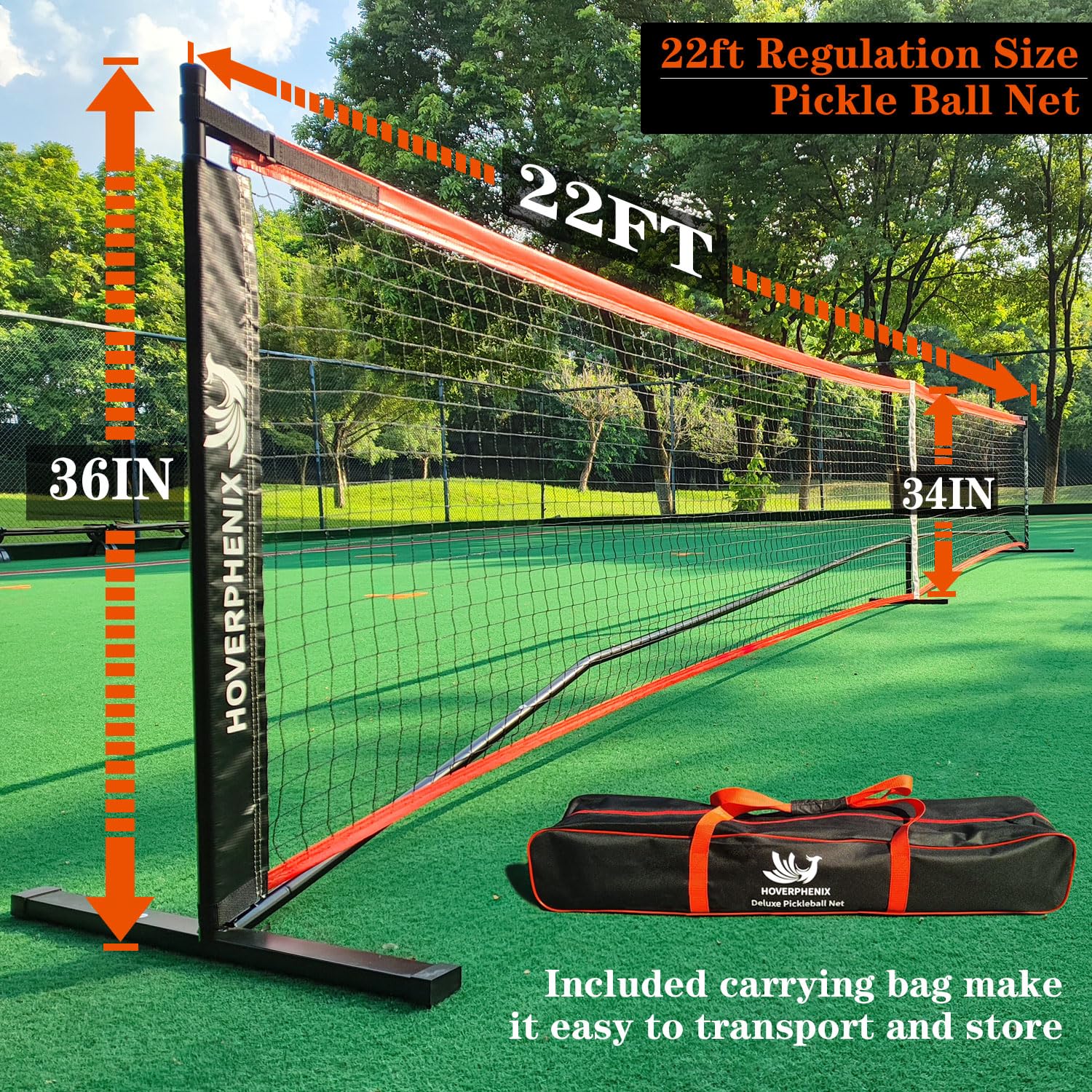 REGULATION SIZE PICKLEBALL NET - Pickleball net meets official standards with 22ft width, 36" height at the sidelines, and 34" height at the center. The net features velcro strap design at the top of the pickle ball nets portable outdoor help to tighten the net to keep strong shape even under windy day