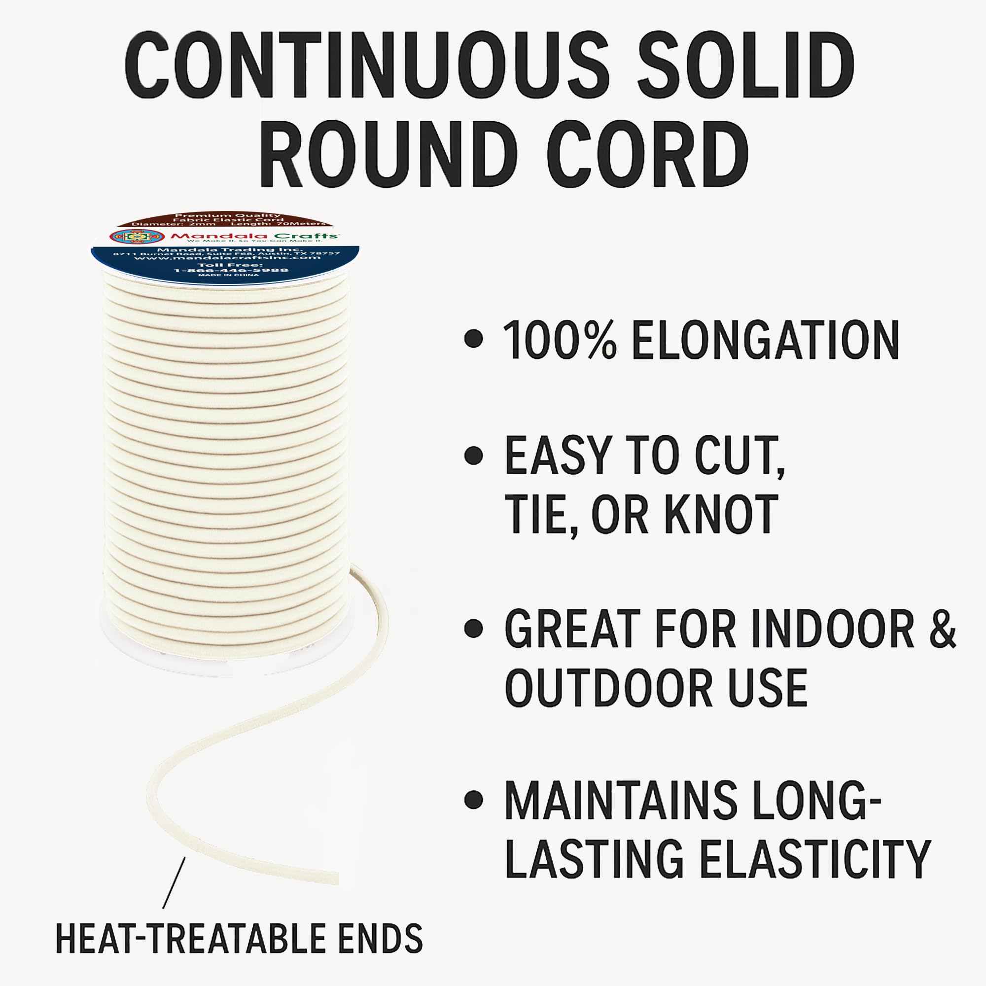 Bulk Stretchy Fabric Elastic Cord 2mm Stretch Strings Spool: The continuous 76-yard solid round cord elastic with heat treatable ends offers 100% elongation. Easy to cut, tie, or knot, the colored elastics cord for indoor & outdoor maintains long-lasting elasticity.