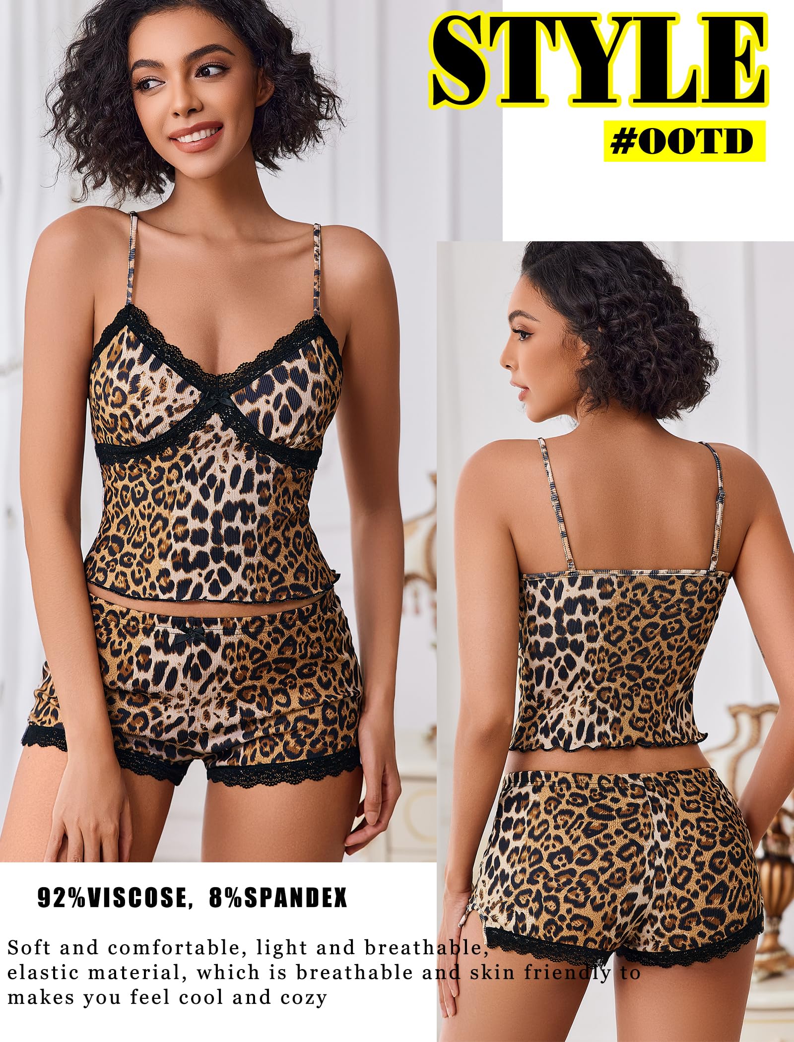 【Sexy Pajamas for Women】Sexy pajama set for women is made of 92% Viscose and 8% Spandex. Silky to the touch, super soft, sexy, breathable and comfortable, skin friendly, making you sleep well
