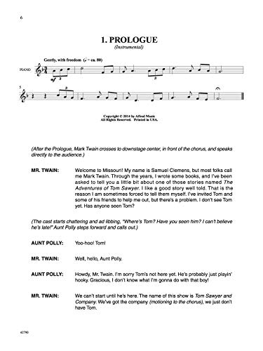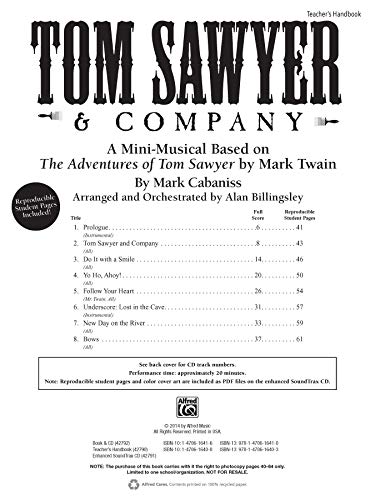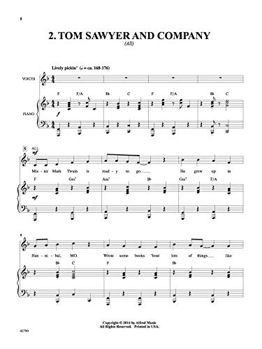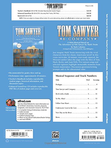 Just imagine Mark Twain interacting with the vivid characters from his classic Americana novel! In this cross-curricular, 20-minute, riser-ready musical, the Missouri author takes the stage with the likes of Tom, Huck, Becky, and Aunt Polly. Five unison songs and selected vignettes highlight memorable moments from Twain's masterpiece. Discussion questions/writing prompts add to the educational value for grades three and up. Titles: Tom Sawyer & Company * Do It with a Smile * Yo Ho, Ahoy! * Follow Your Heart * New Day on the River. Book is 100% reproducible.