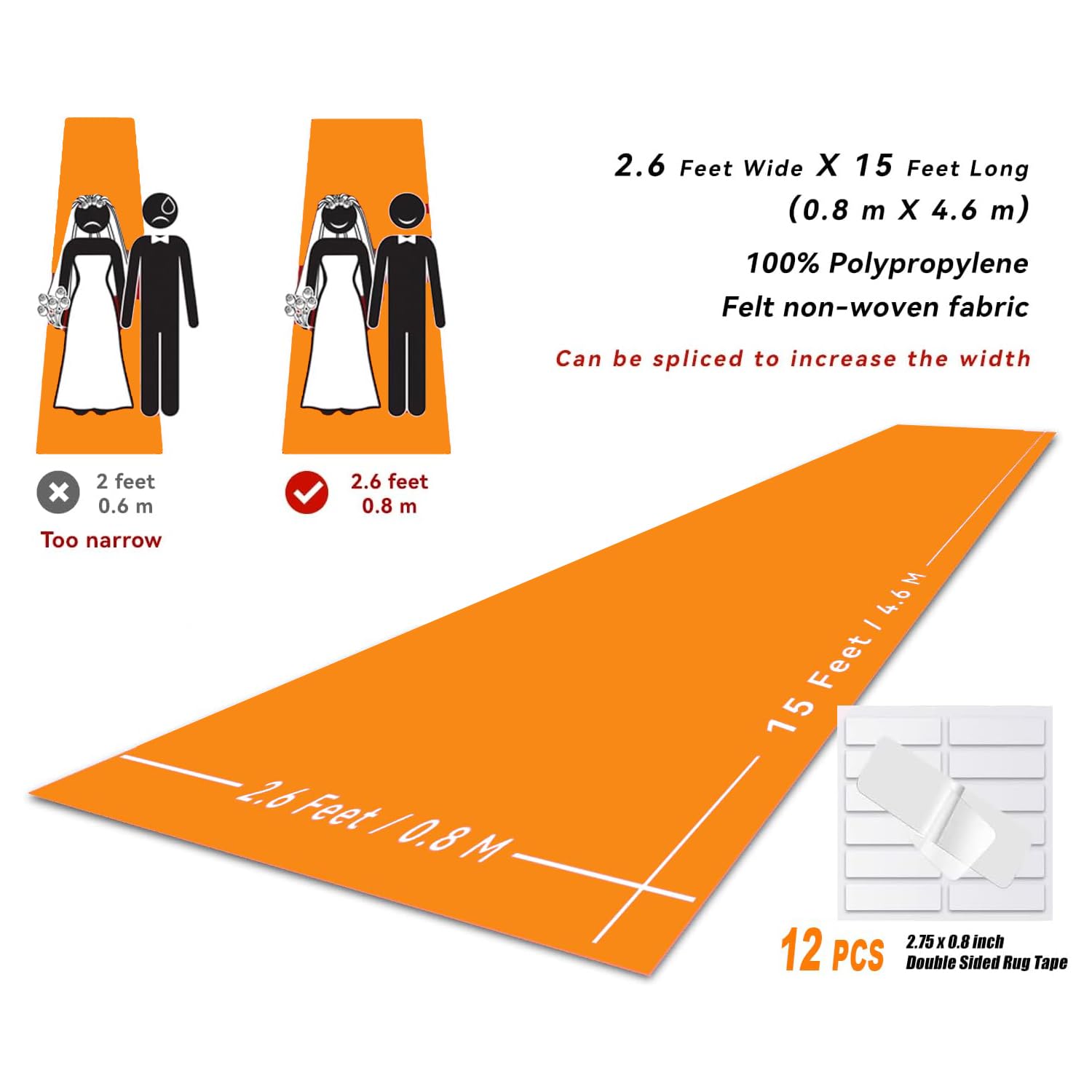 Spacious 2.6ft x 15ft Size for Gatherings: Designed with a practical 2.6ft (0.8m) width (vs. standard 2ft), this party carpet runner comfortably fits two adults walking side by side. At 15ft (4.57m) long, it blends seamlessly into your event site, accenting spaces without feeling too narrow—perfect for group photos, shared entrances, or festive processions