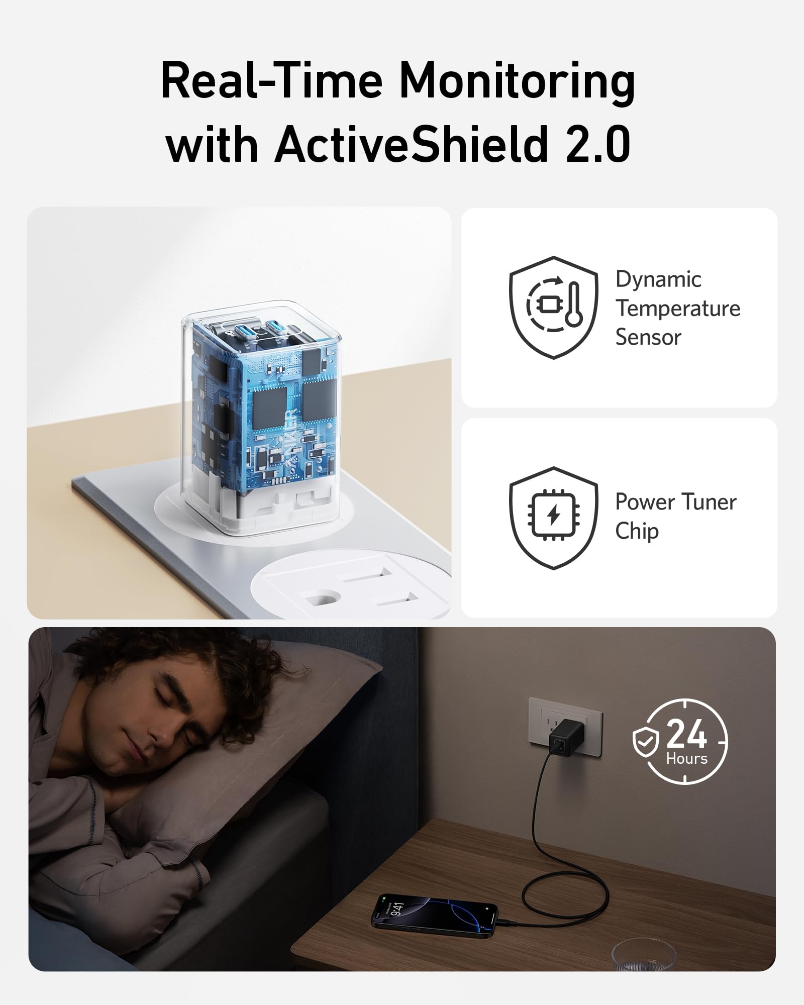 Advanced Safety with ActiveShield 2.0: Anker's proprietary technology intelligently monitors temperature over 3 million times per day, providing twice the protection of ActiveShield 1.0 and ensuring the longevity of your devices.