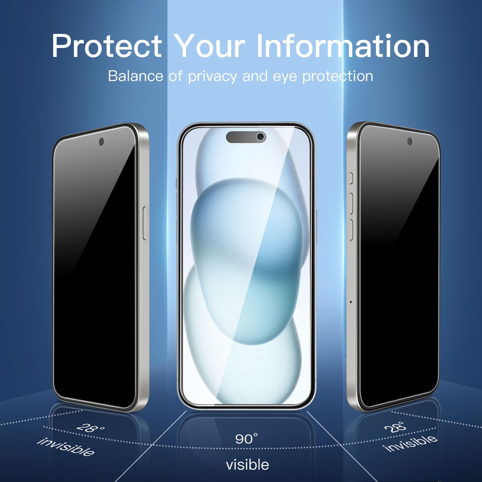 Provides an additional layer of privacy protection: the advanced privacy filter blocks viewing from any angle greater than 28° to keep what’s on your iPhone 16 Plus,15 Plus screen for your eyes only.