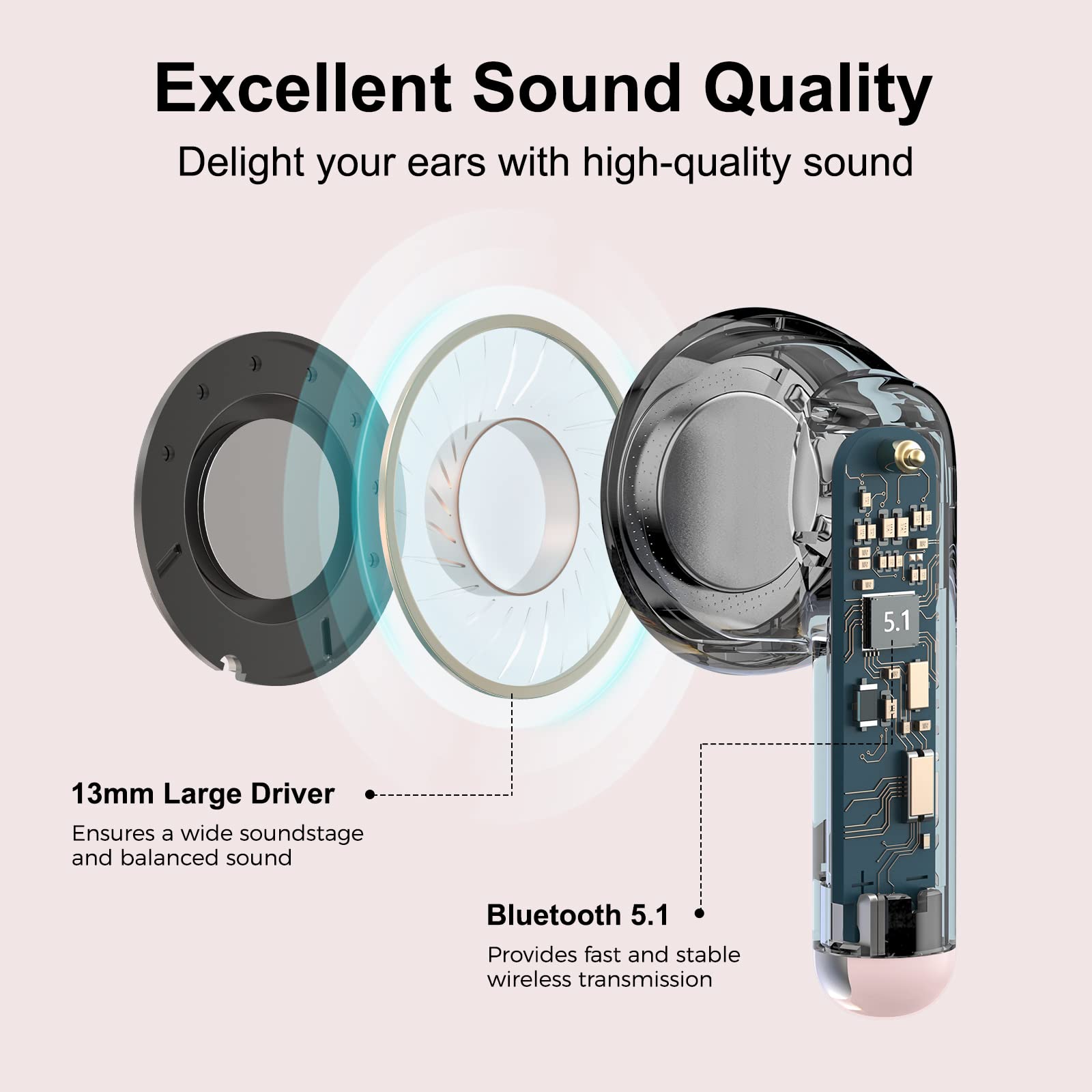 Fast and Stable Wireless Audio Streaming: With advanced Bluetooth 5.1 technology, these true wireless Bluetooth headphones can connect seamlessly with all your Bluetooth-enabled devices.
