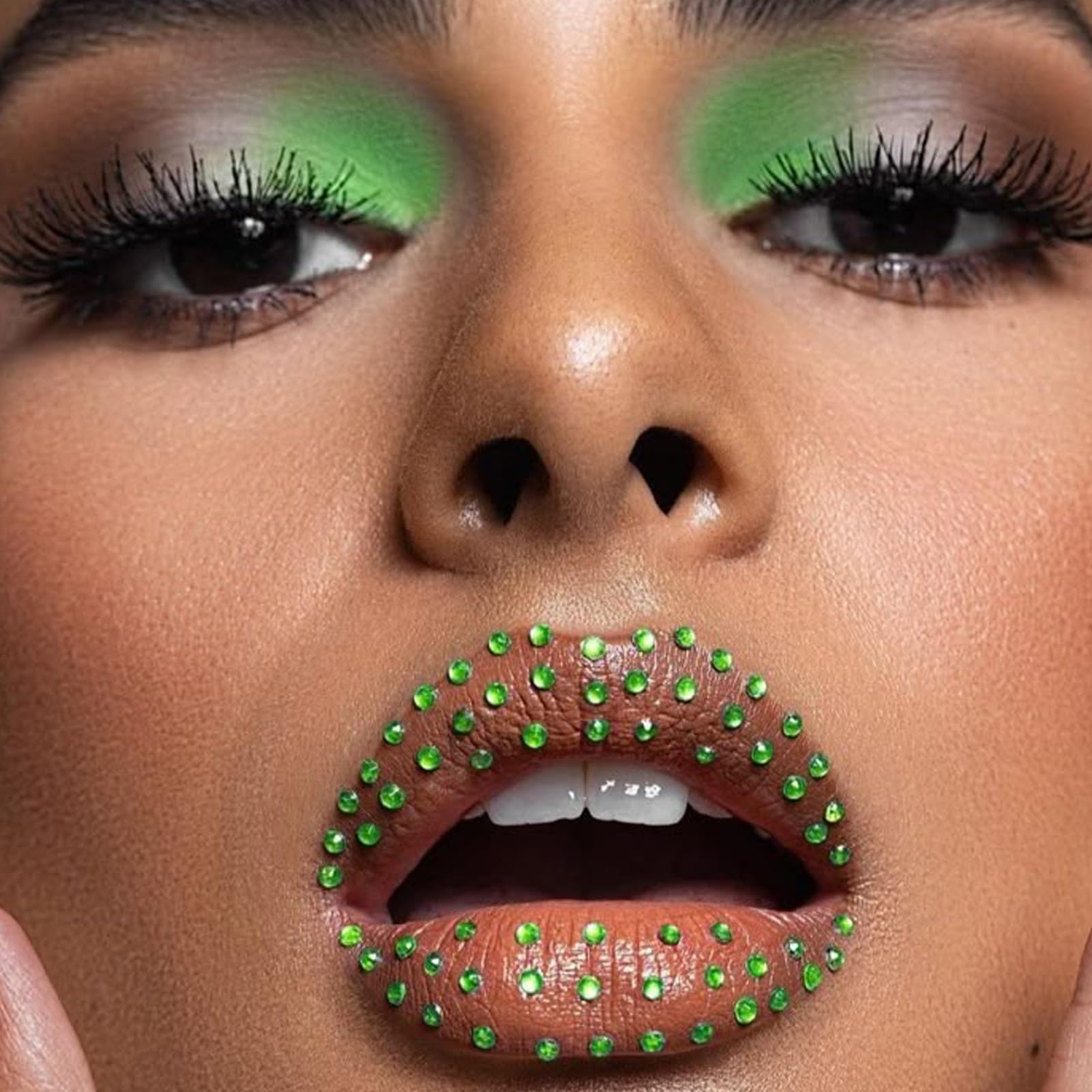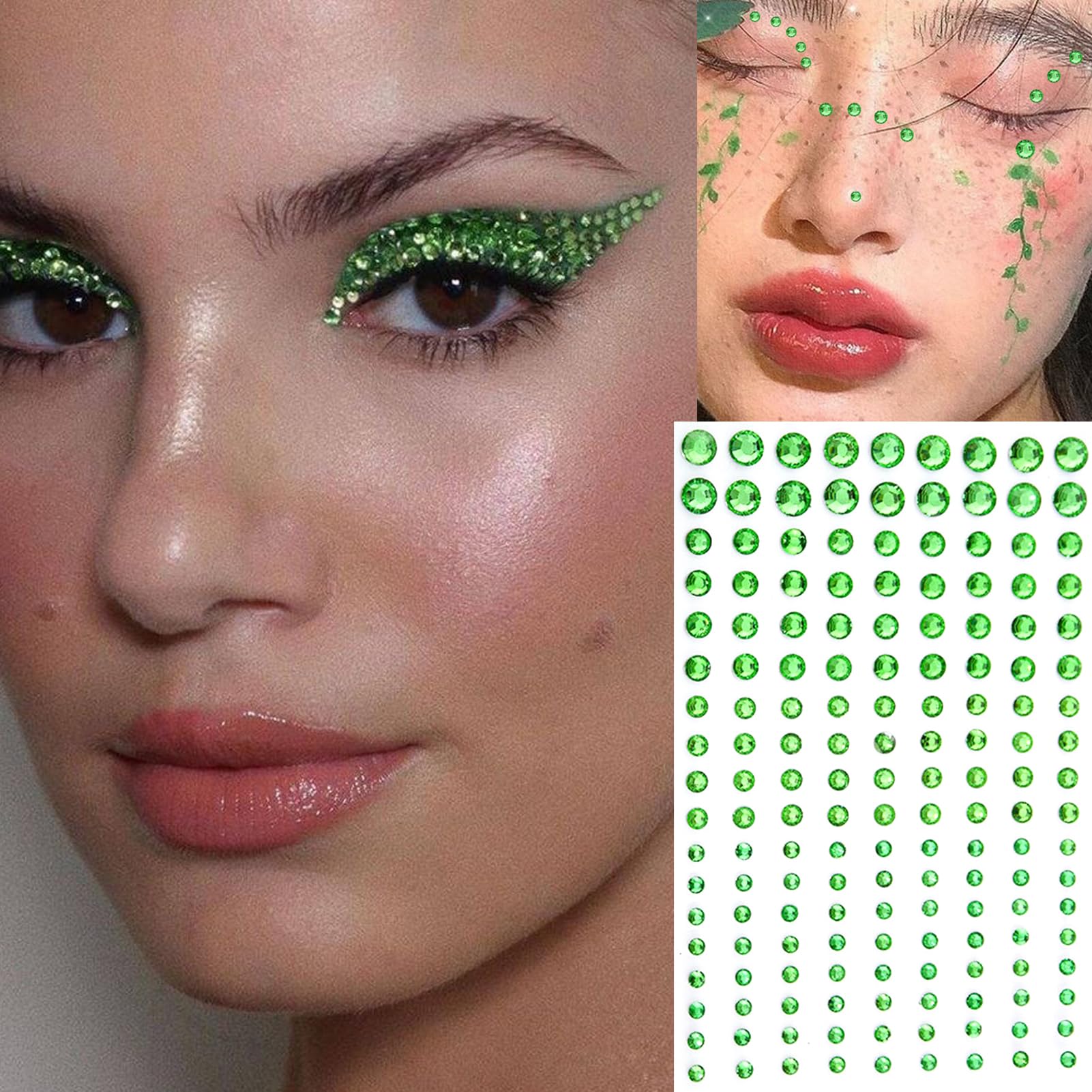 💎【Green Face Gems Festival Accessories Package Included】: Face jewels for makeup rave accessories- 3 sheet, a total of 486pcs PEAL face rhinestones face glitter with 4 sizes(3/4/5/6mm);And a mint green tweezers.