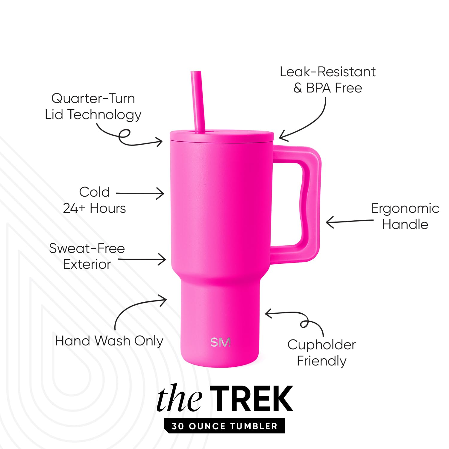 The Simple Modern Trek Tumbler is double walled and vacuum insulated to keep your drink hot or cold for hours. The cup is outfitted with an ergonomic handle, that is aesthetically designed for comfort. It comes with a straw lid and two straws so you can enjoy your favorite beverage on the go. The straw lid is four-way threaded to allow four different straw placements for your drinking hand preference. The Trek is made from 18/8 stainless steel and fits standard cupholders, and with a variety of color options, you can get an Emotional Support Water Bottle for whatever outfit or activity the day entails -- Take Us With You.