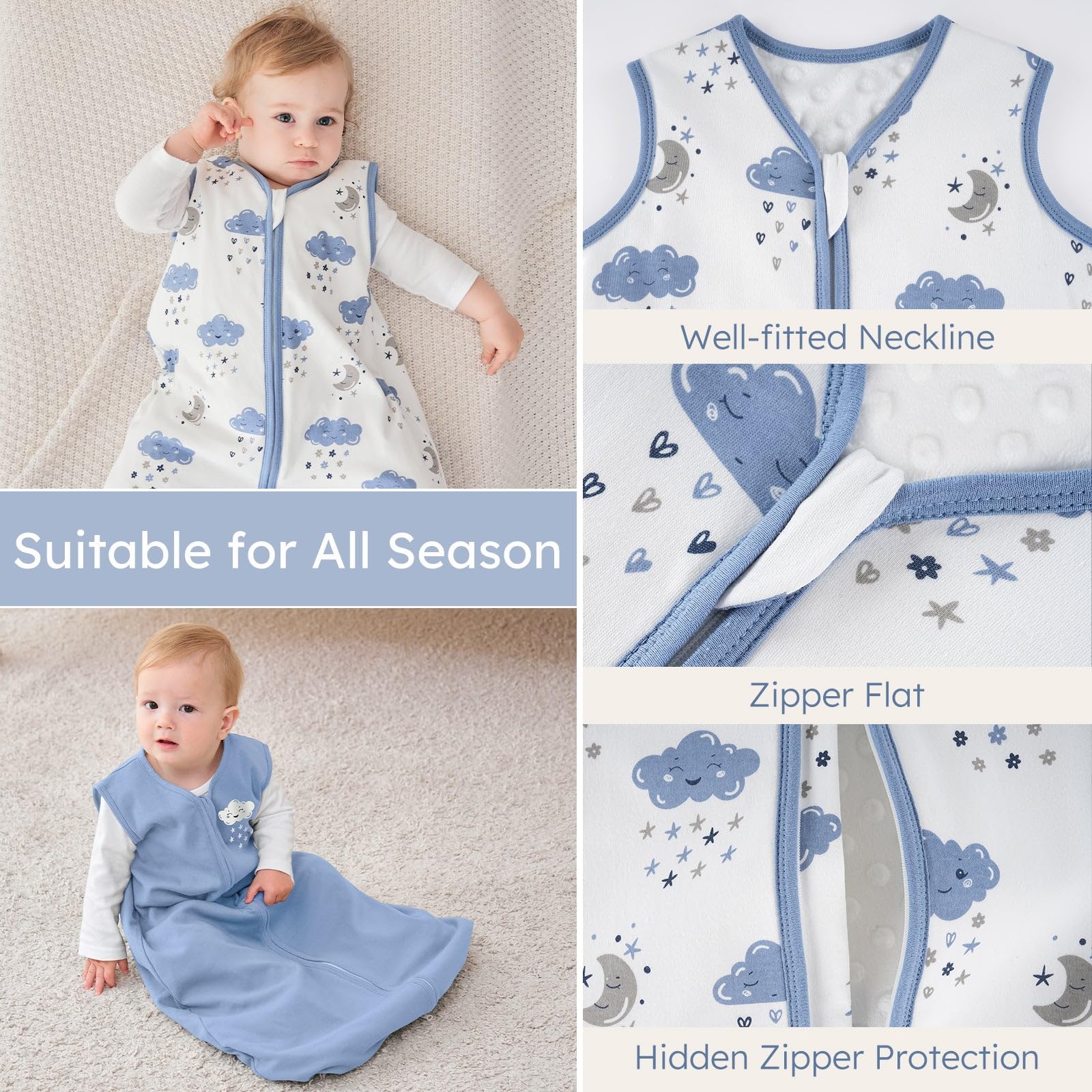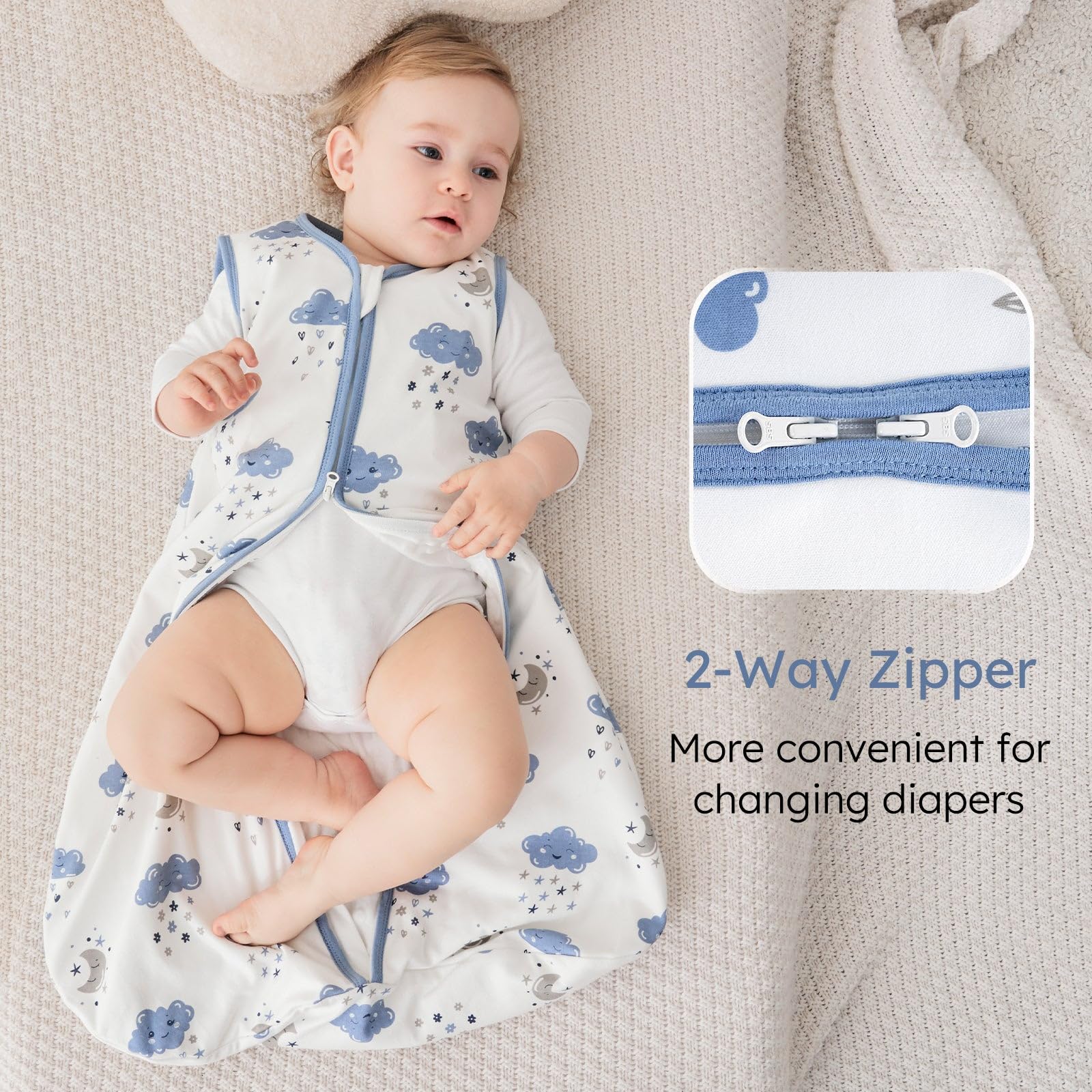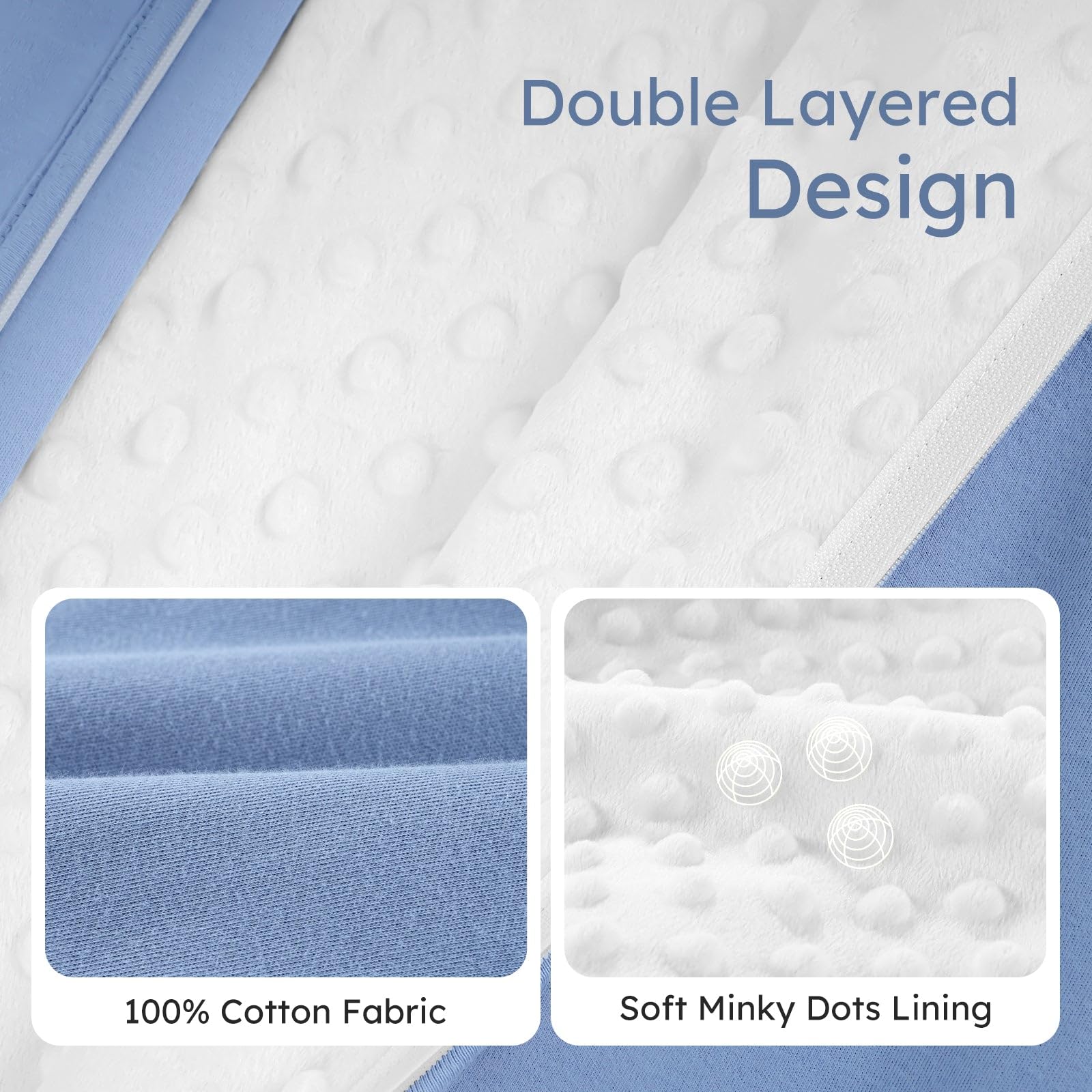 Hidden 2-way Zipper - Hidden zipper and neckline design to avoid any potential scratching baby's delicate skin. Double zipper allows for effortless dressing and making nighttime changes easier. The high-grade zippers of sleep sacks for baby glide smoothly without getting stuck or jammed, easily open and close.