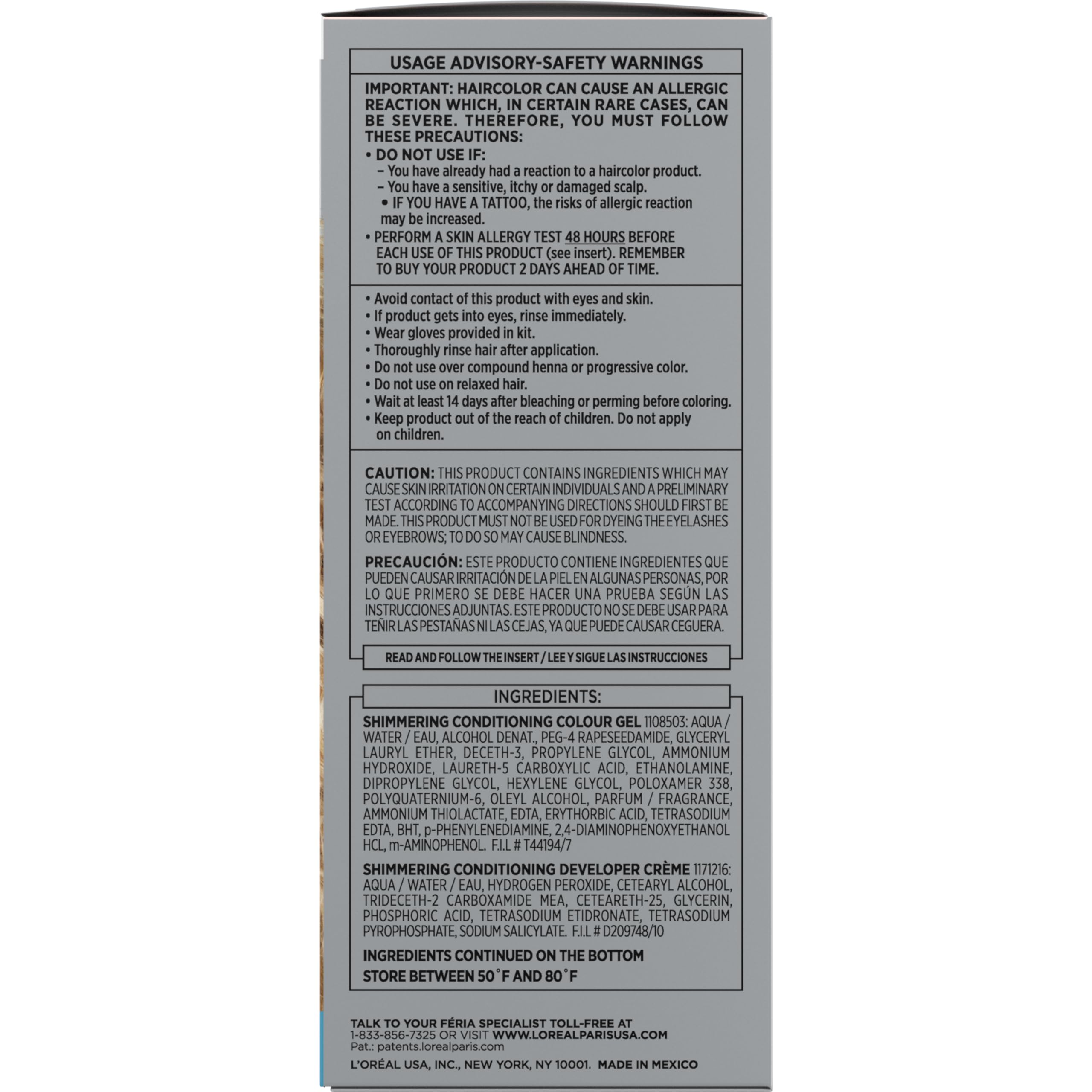 With L'Oreal Feria, what you see is the shimmer. Multi-Faceted shimmering color with 3X highlights delivers intensified, brilliant results. Inspired by fashion, Feria offers a twist on the traditional and gives edgy hair color - from bright red, platinum blonde, rose gold, metallic brown, to blue black hair color, these hair dye kits will transform your hair. Feria's prismatic color spectrum is custom-blended by L'Oreal master colorists for bold, head-turning shades, no appointment necessary. The Power Shimmer Conditi1r seals and smooths. Won't wreck or ravage hair. Packaging may vary, what you receive may not be what is reflected on site.