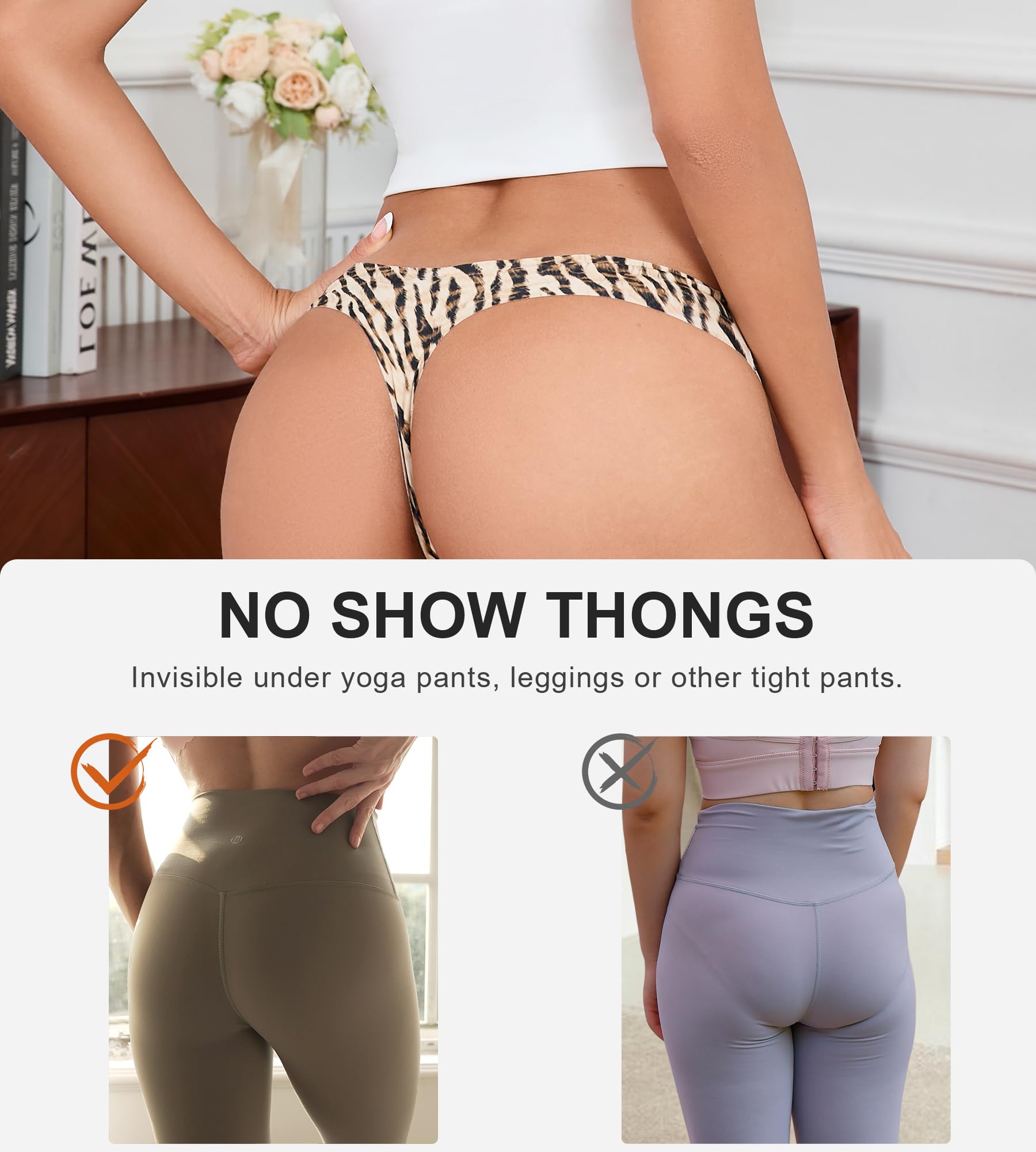 OCCASION: Women Thong Panties suitable for every season, pairs well with low rise pants, invisible under the tight pants, even leggings, It feels like wearing no underwear. Not only are they seamless, but they're so comfortable.