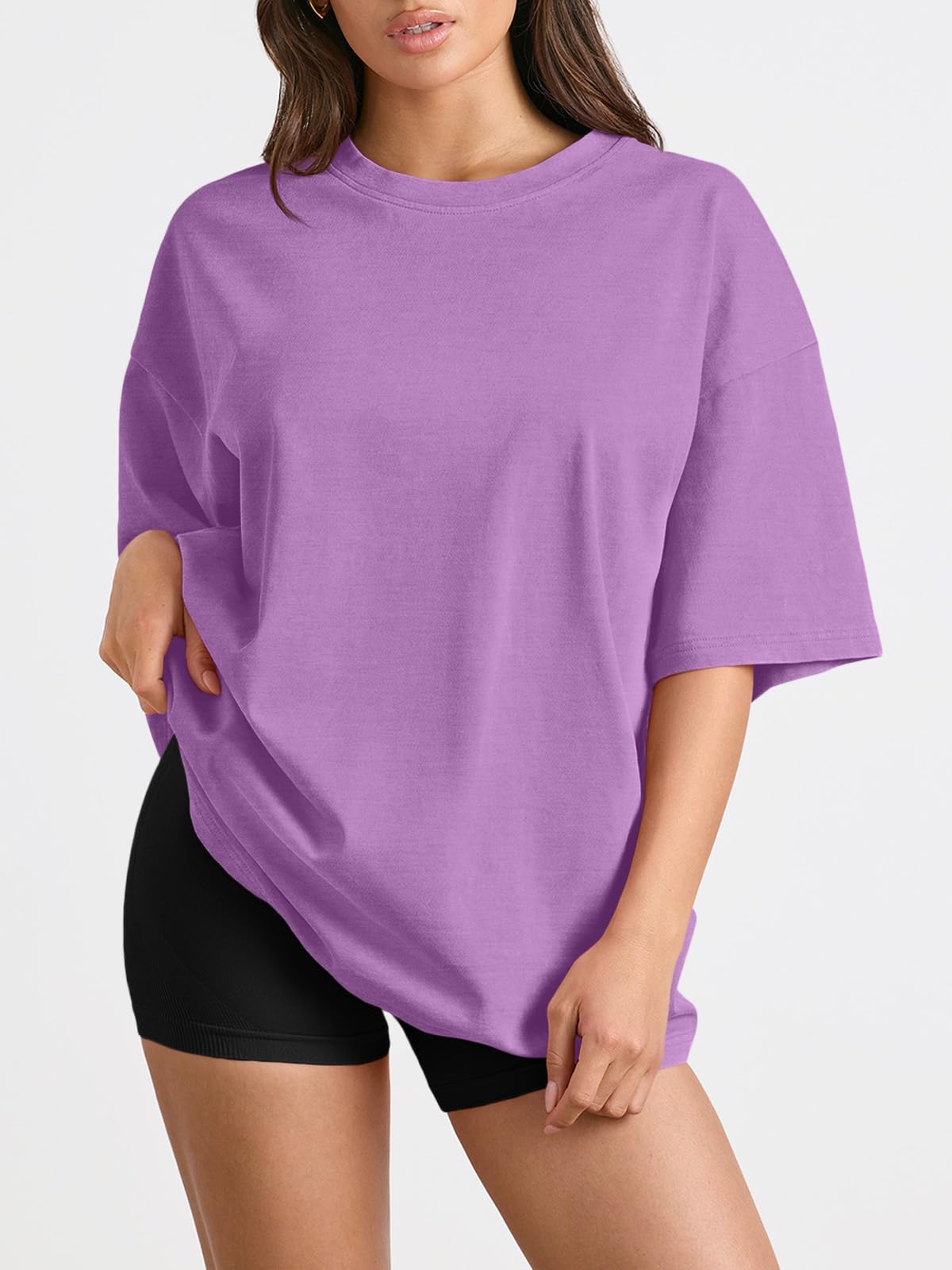 Design:Short sleeve shirts,round neck,loose fit tops,oversized casual blouse,solid color never out of style,easy to match with every style.