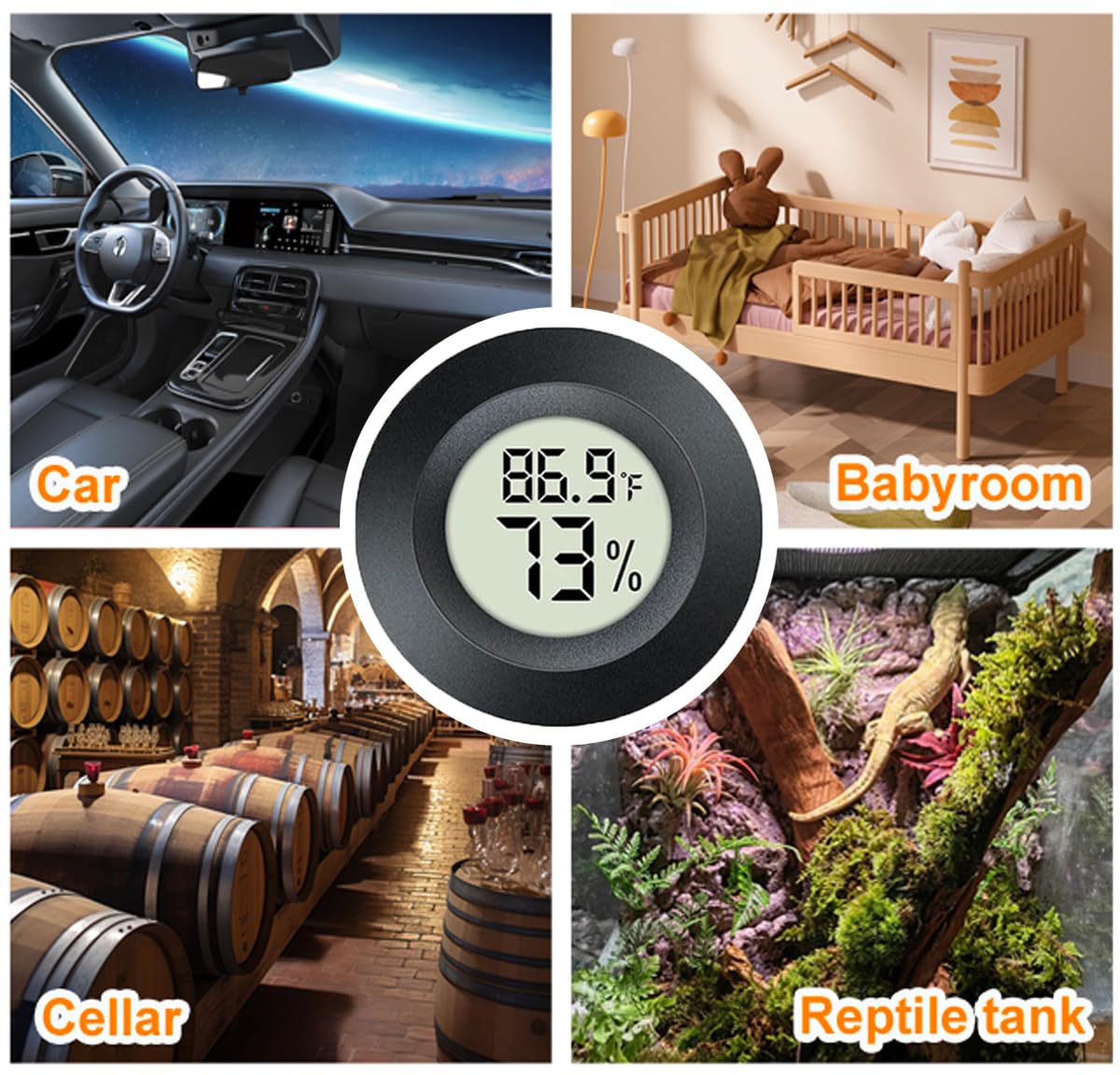 1-【Widely Application】The digital LCD monitor can be used in home, office, garage, schools, hotels, laboratories, kindergartens, aquaculture, instrument workshop, warehouse, reptile tank terrarium, aquarium, hermit crab habitat, and other places where temperature/humidity measurement is required.