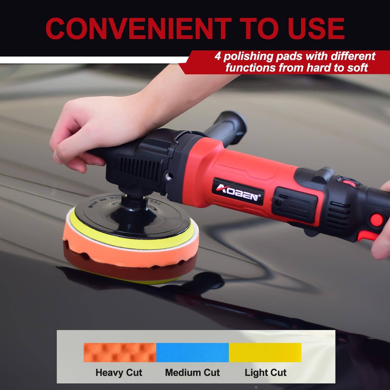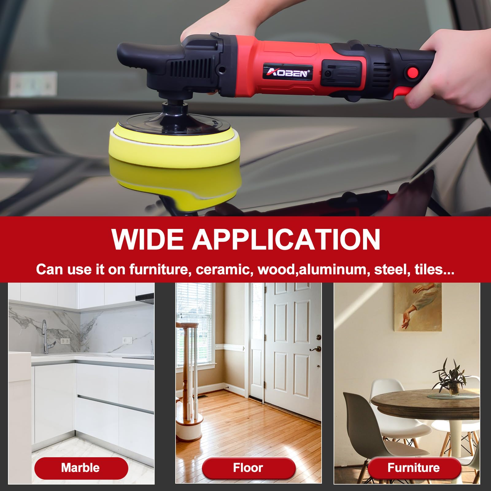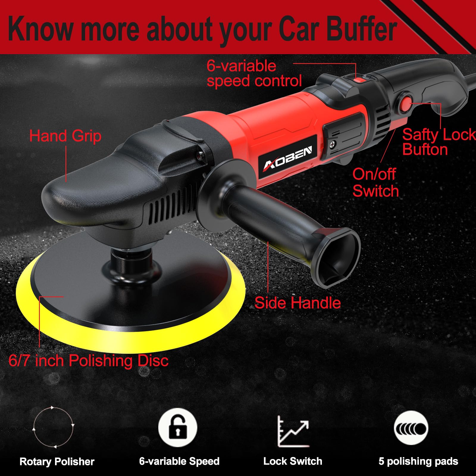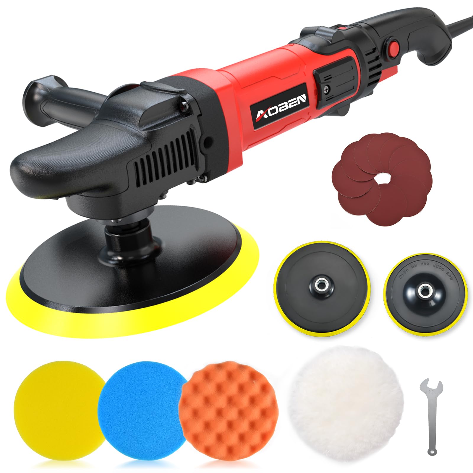 🚗【POWERFUL Motor】120V,6/7-Inch polisher;Powerful 1600W motor produces up to 3500RPM,powerful enough for a professional.for Car Sanding, Polishing, Waxing, Sealing Glaze,Low speed for waxing and buffing; Medium speed for polishing and cleaning while high speed for removing paint defects and oxidation.