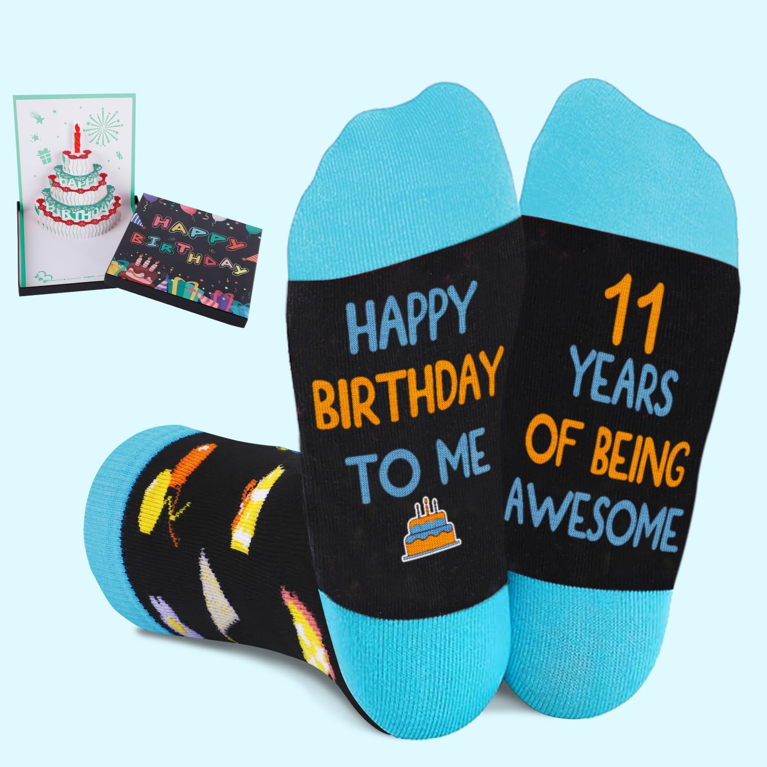 11th birthday gifts for Boys: A cut 3D pop up birthday card come together with the socks. The birthday greeting card made of sturdy paper and laser cutting technology to create a beautiful 3D cake scene with a highly detailed design.There's plenty of space to write your own personalized wishes and greetings that wishes them a Happy 11th Birthday