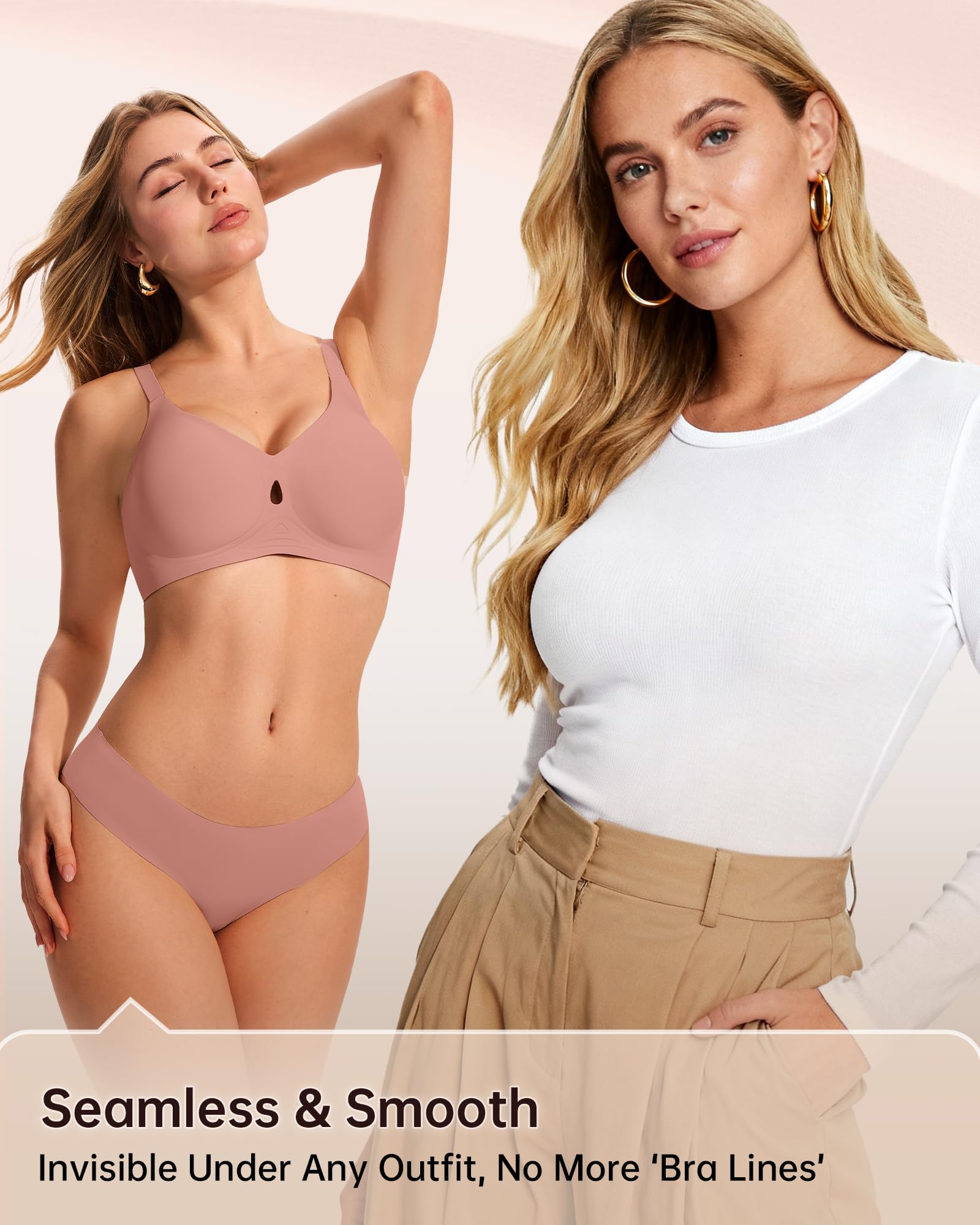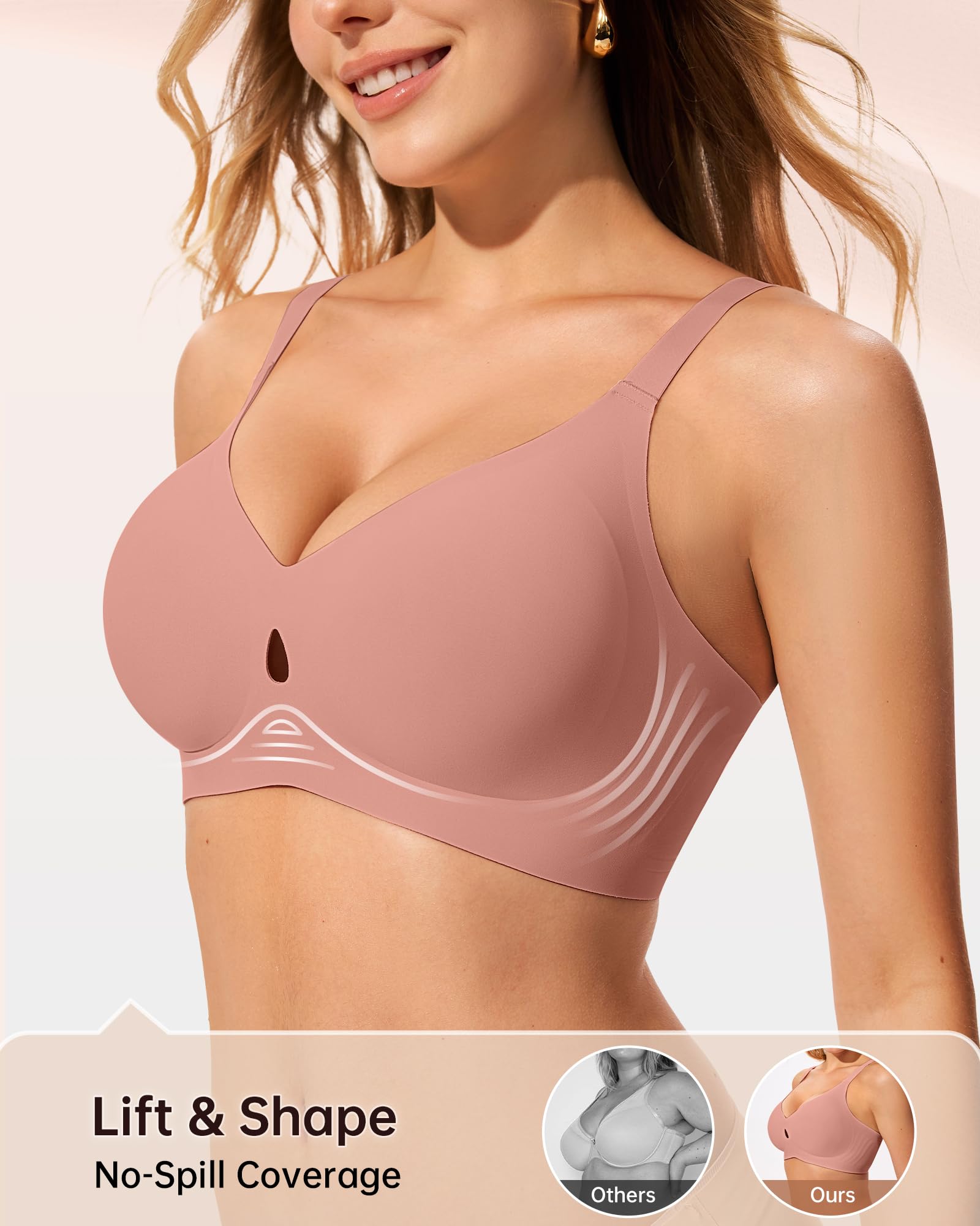 【Breathable Hollow Water Drop Design】Delicate water drop cutouts combine breathability and elegance in LetsJoli wireless bras for women, creating a comfortable experience while enhancing comfort and fit. The breathable hollow cutouts enhance airflow, keeping you cool and dry during extended wear and improving overall comfort