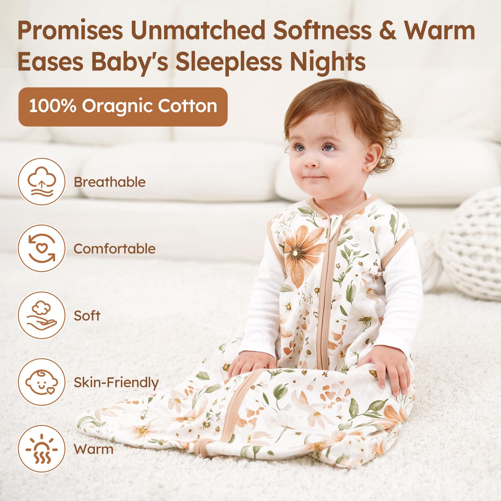 UPGRADED PROCESS-Compared with ordinary one, our 100% combed cotton sleep sack brings 30% optimization in both comfort and breathability. Pre-washing technology effectively reduces the shrinkage rate by 50%, which ensures the baby sleeping bag can be machine washed and dried at low temperatures without distorting. We care not only for babies, but also for busy parents!
