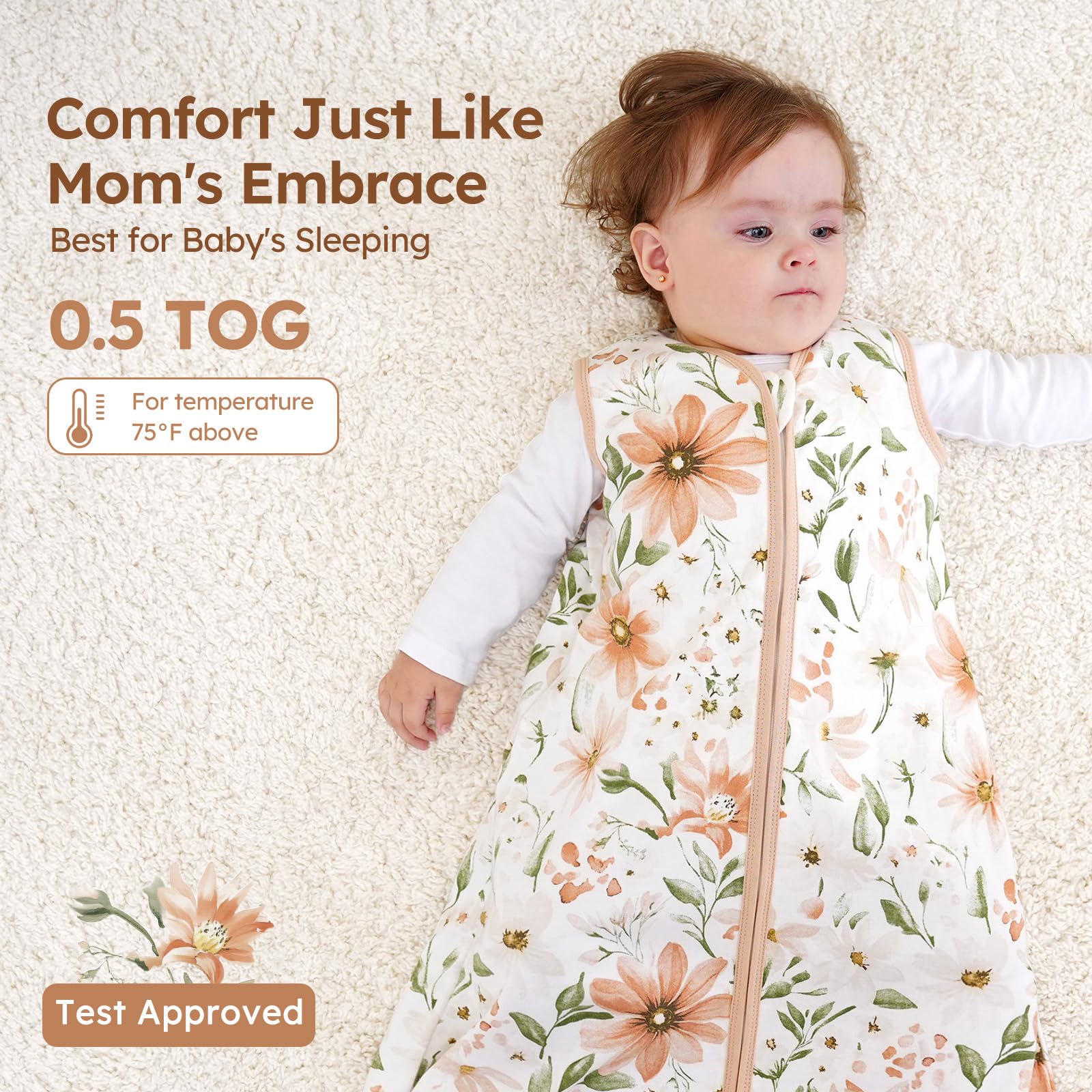 EASY DIAPERING-2 way zipper runs from the top to the bottom, making the lightweight sleep sack much convenient to change diapers without any interruption, especially during midnight. Equipped with zippe guard prevent rubbing on your baby's sensitive skin and protects baby's chin. Tog rating 0.5, making it perfect for nursery room temperature 75°F above.