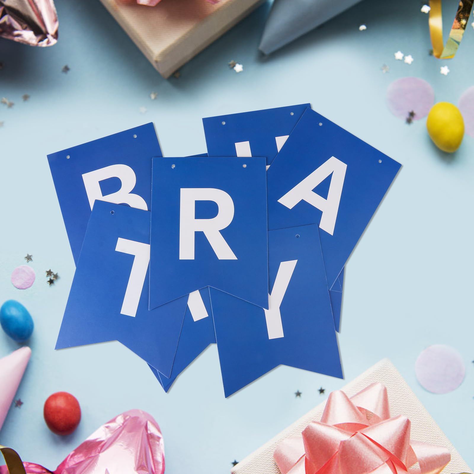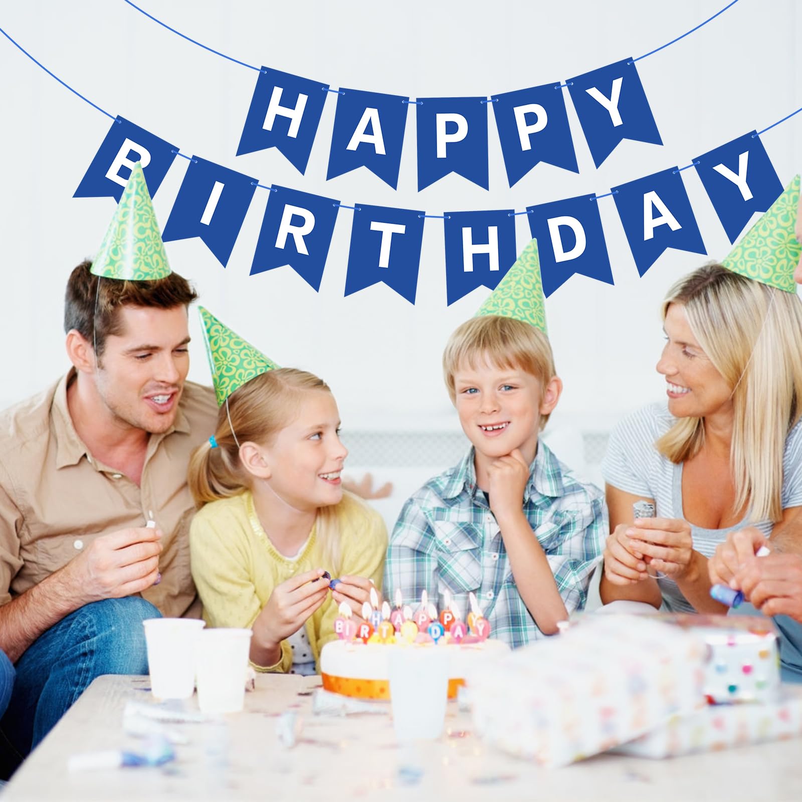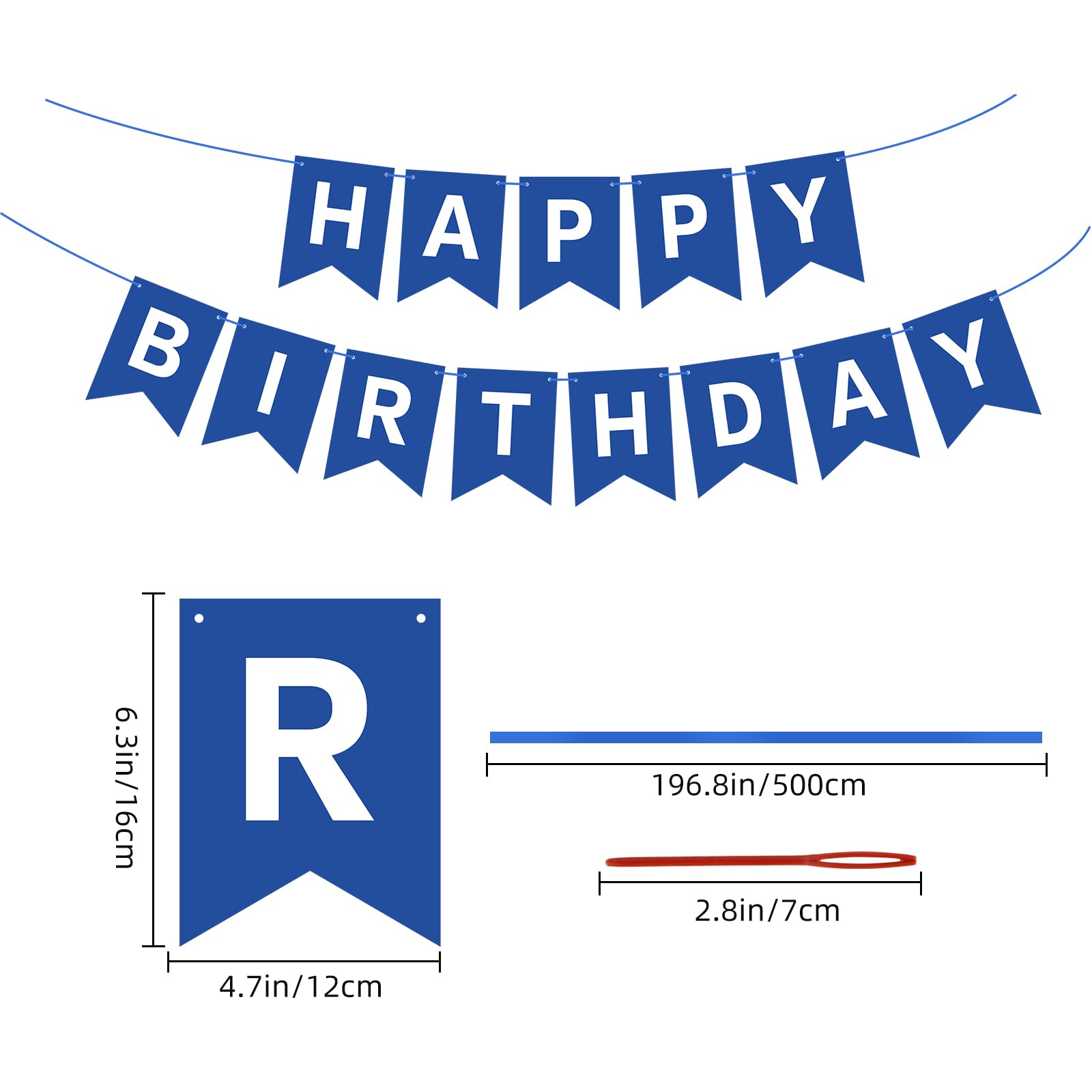 EASY-TO-MAKE: Each navy blue banner flag card size is 4.5" × 6.3". 13 paper flags that spell the phrase "HAPPY BIRTHDAY" on 1 roll strand (length 16.4ft). You can use a plastic needle with the ribbon to easily string all the letters together without effort, the spacing between the flags is adjustable. You can move the triangle flags to have a different look.
