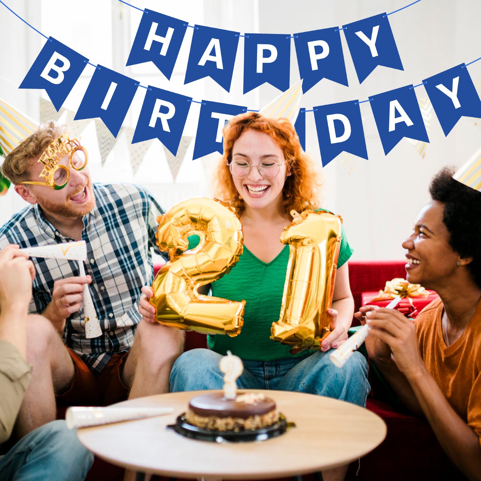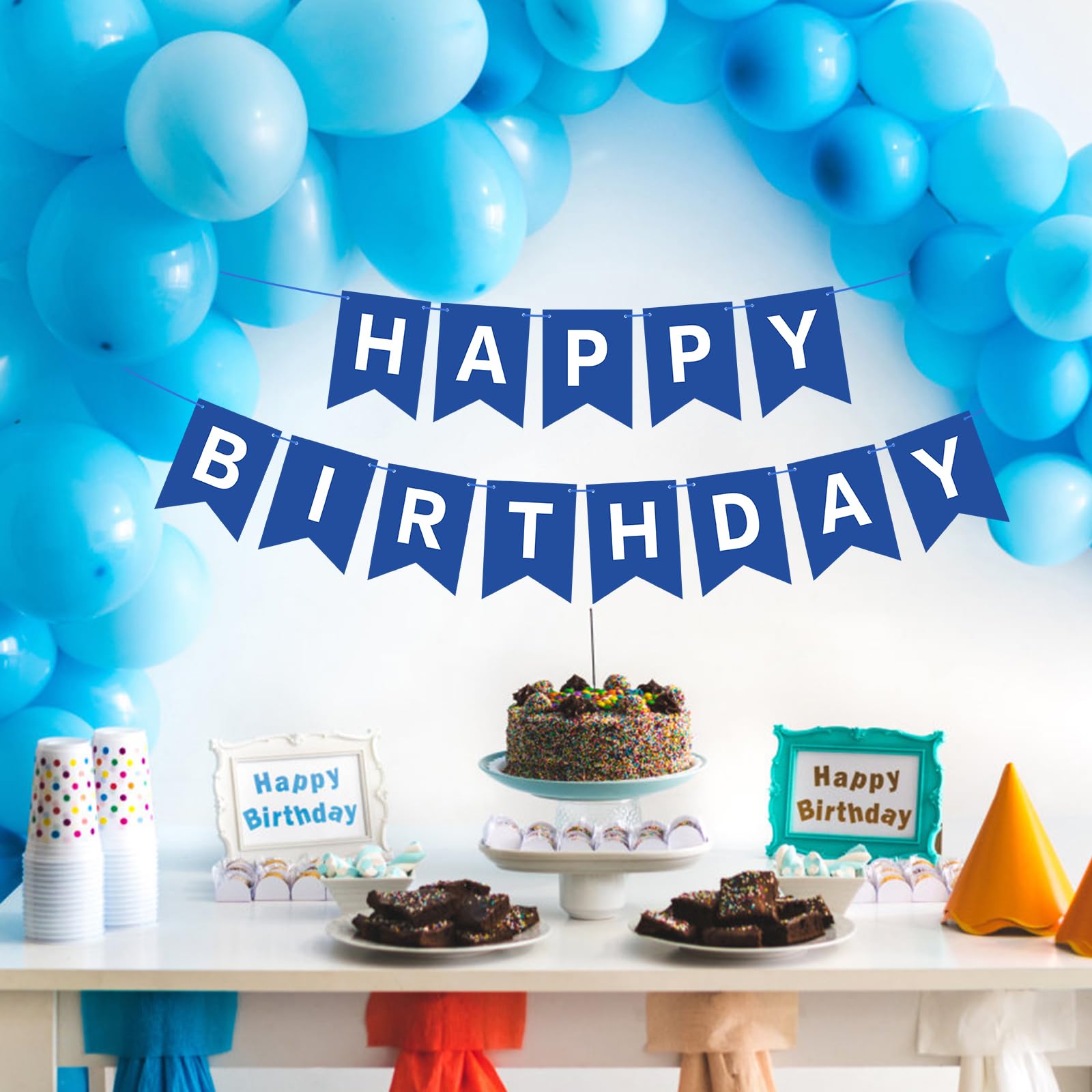 HIGH QUALITY: Made of high-quality ECO-Friendly paper, resistant and reusable. Lovely and lively colors add luster to the space decoration. Happy birthday, banner navy blue easily fits any wall, fireplace, gift table, buffet table, garden, living room, family room, banquet hall, indoor or outdoor