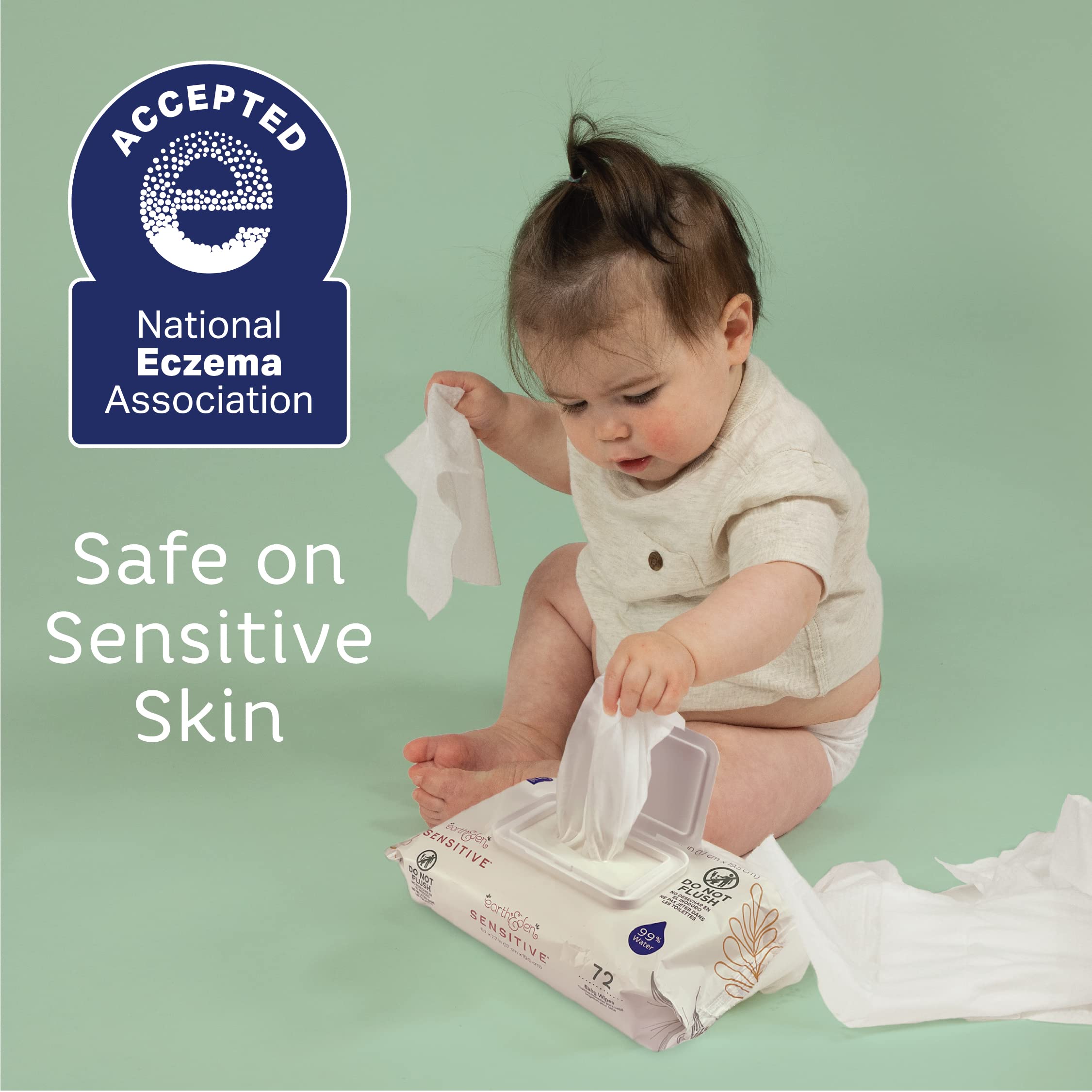 Earth & Eden Sensitive wipes are made with 99% water and are the perfect combo with our diapers for your baby's sensitive skin