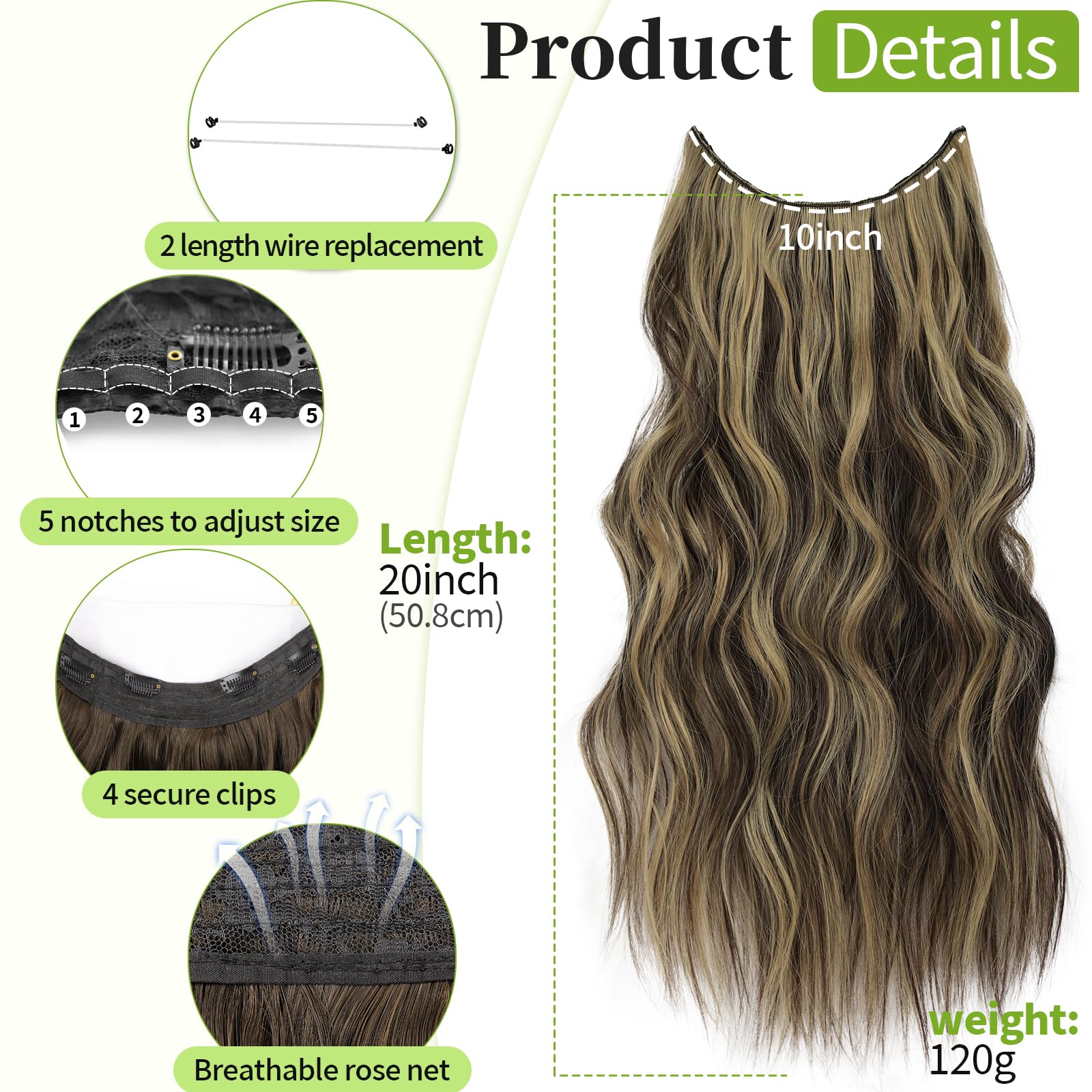 Secure Fit: 1. 4 clips sewn on the weft will keep the hair extensions stay in place. 2. Thicker and invisible wire allows the extension to lie smooth and flat on the head like a secret headband. 3. New S Hook will prevent the wire from falling off.