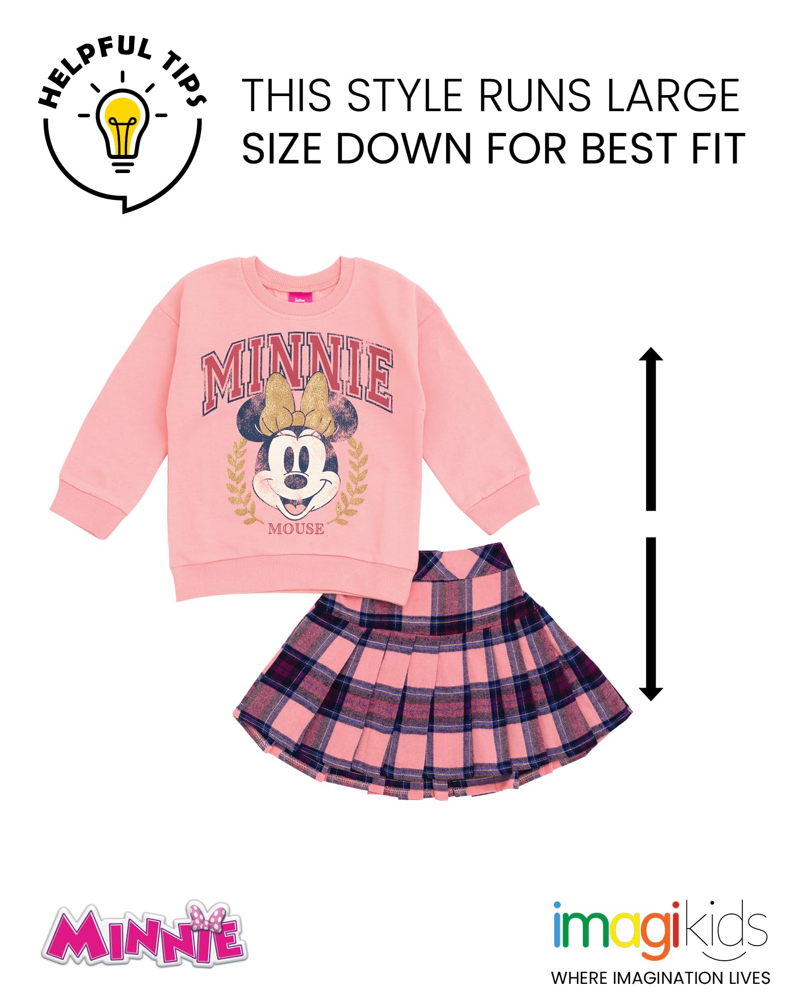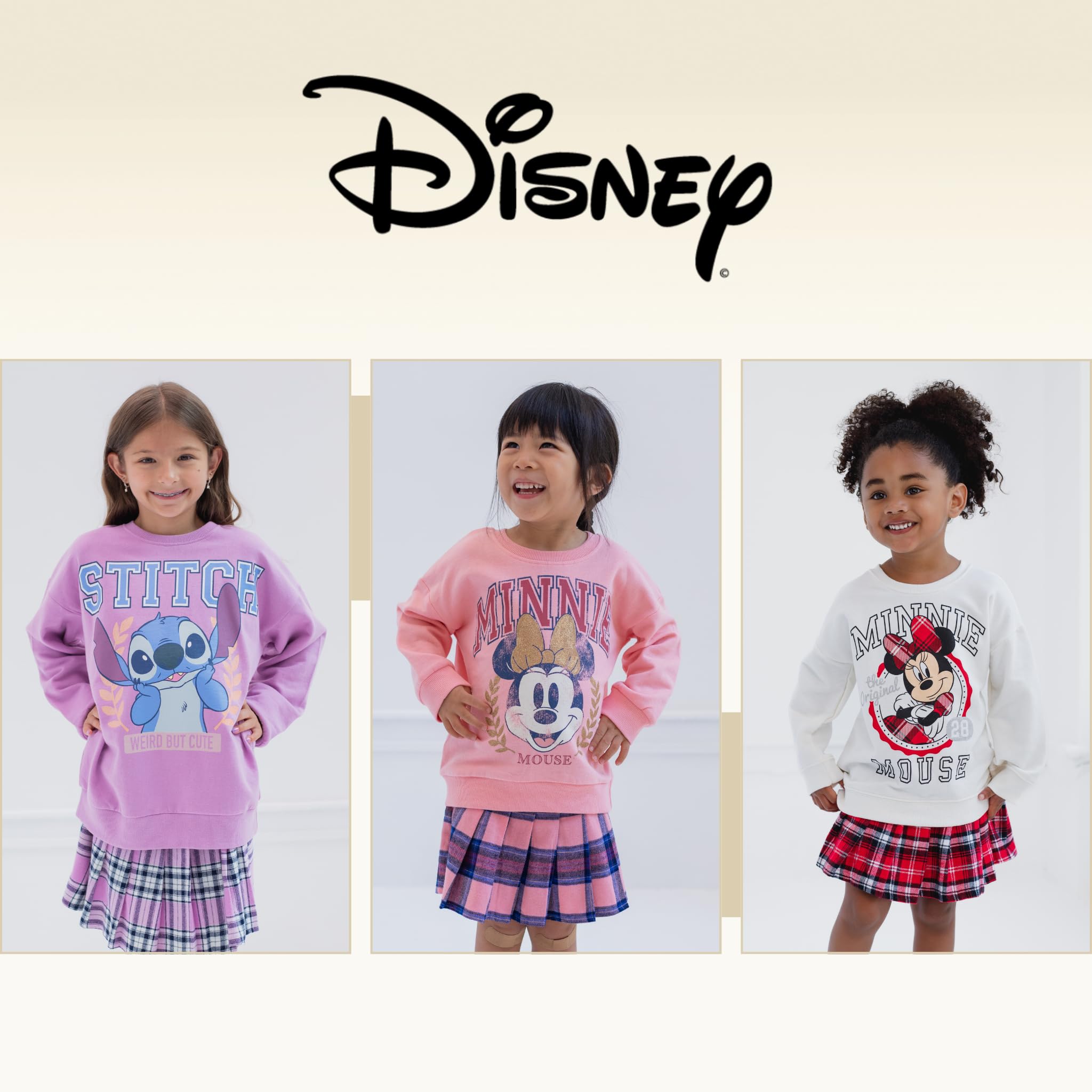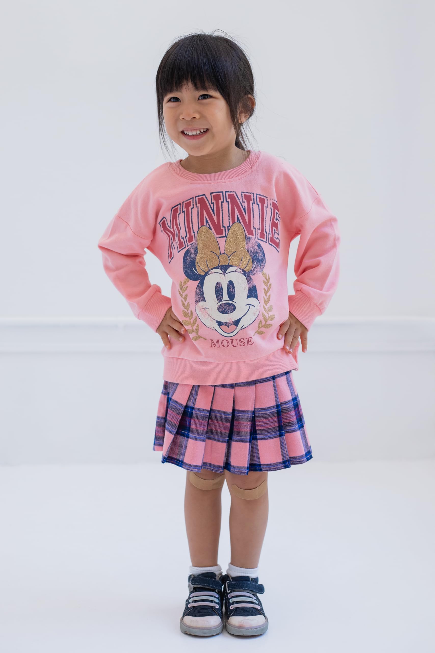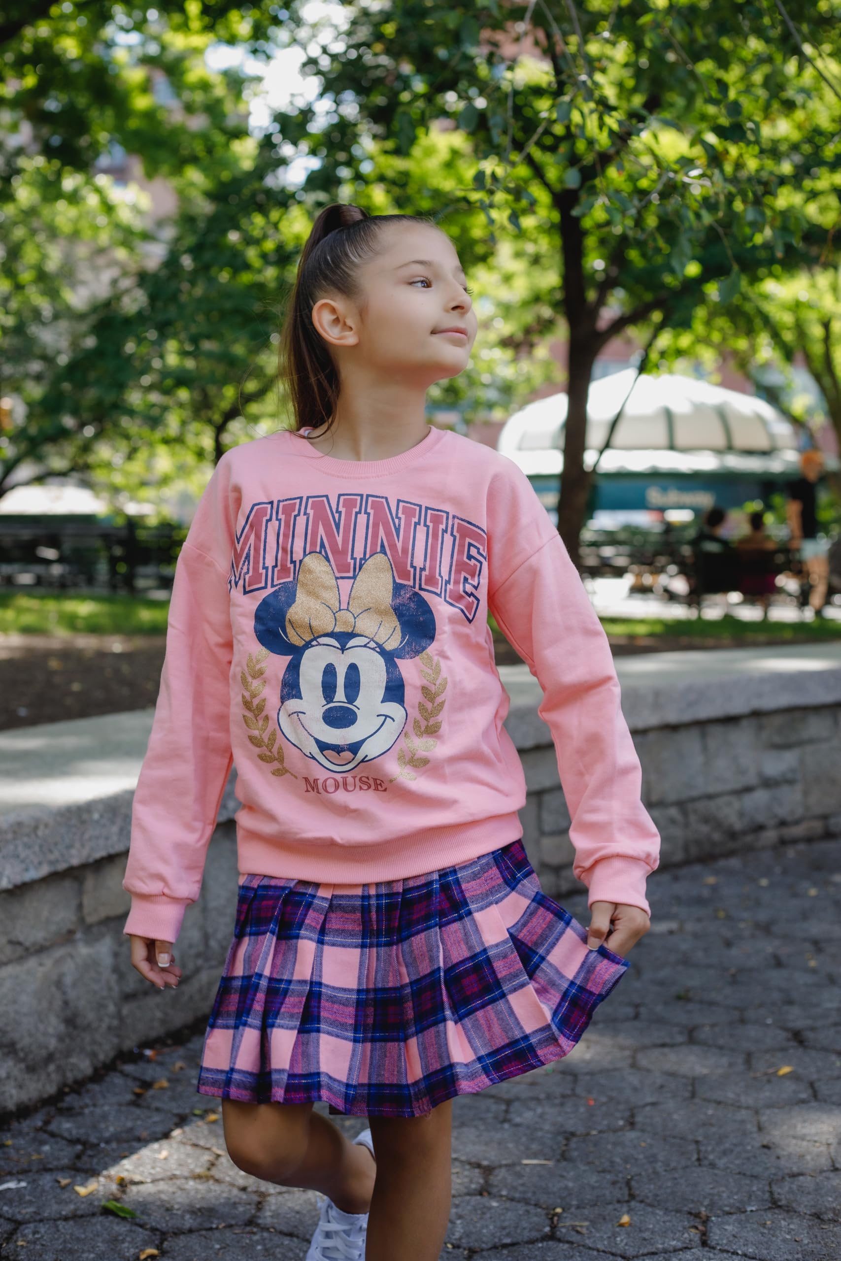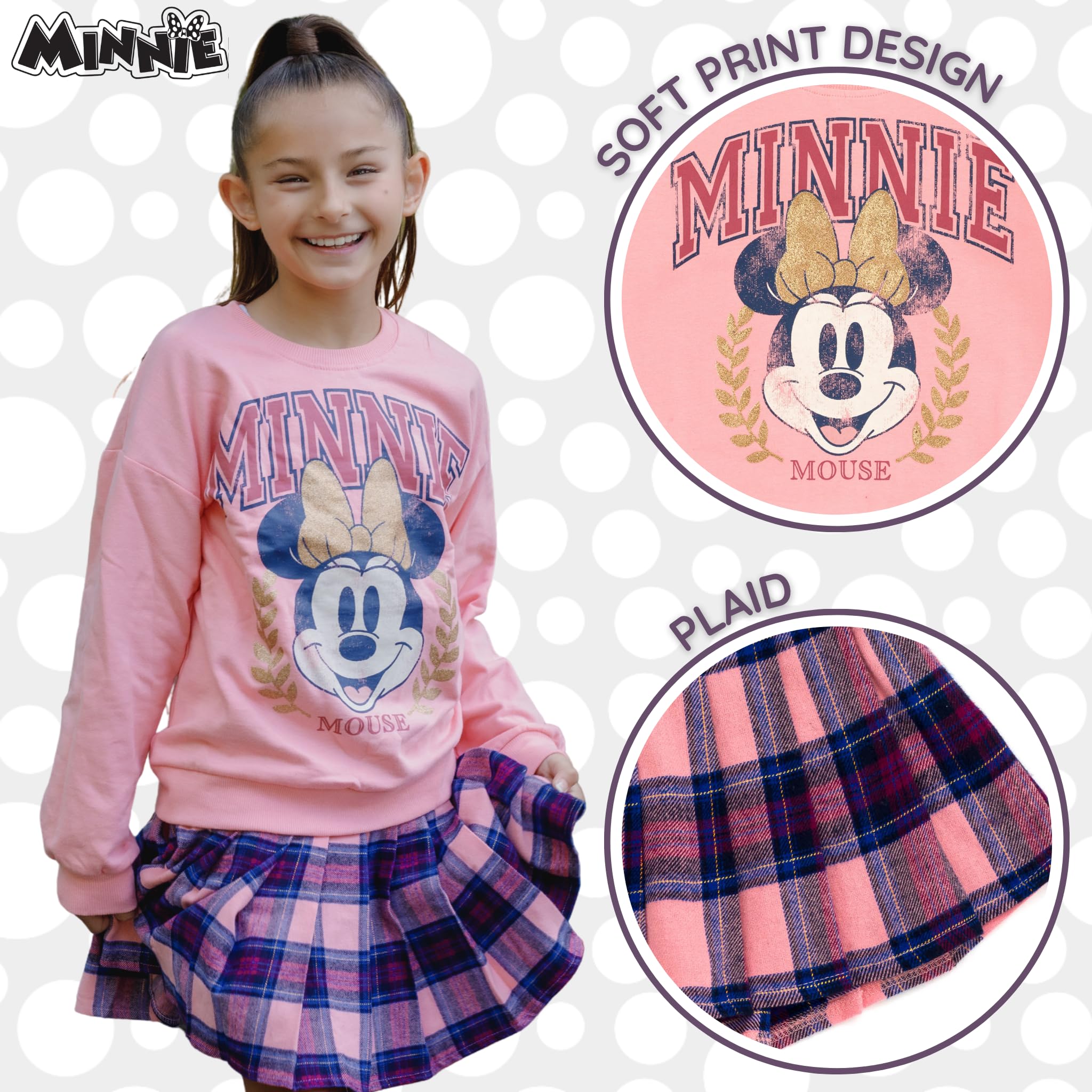 Officially licensed Disney Minnie Mouse big girls cute and stylish long sleeve graphic sweatshirt and skirt