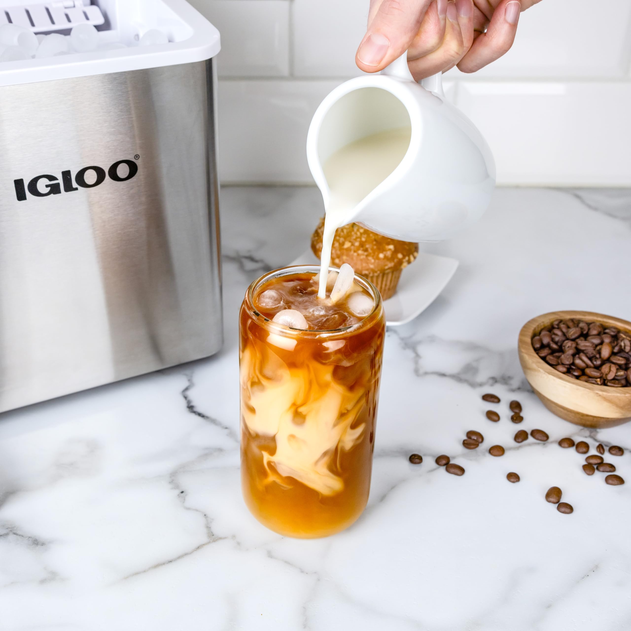 Igloo Stainless Steel Portable Ice Maker with Handle is the ultimate solution for those who enjoy refreshing cold drinks without the hassle. Whether you're hosting a lively get-together or unwinding after a long day, this efficient ice maker ensures you’ll never run out of ice. Designed to produce up to 26 pounds of ice daily, this countertop ice maker delivers fresh, crystal-clear cubes quickly and conveniently. It’s perfect for making ice for everything from chilled water and smoothies to cocktails and cold brew coffee. With its modern design and compact size, it fits effortlessly into any kitchen, RV, or office space, making it an indispensable companion for your ice-making needs. Designed with convenience in mind, this portable ice maker takes the effort out of keeping drinks cold. It produces nine cubes in just seven minutes, ensuring that you always have ice when you need it. The innovative self-cleaning ice maker feature saves you time and energy by keeping the machine spotless with a simple push of a button. You can now enjoy perfectly formed ice at your fingertips without worrying about constant maintenance. Its sleek, compact design ensures it fits seamlessly into small spaces, making it ideal for both home and portable use. For those who value efficiency and versatility, this ice machine maker countertop is your go-to solution. With a 1quart water tank, it consistently produces ice at an impressive rate, keeping your drinks chilled and refreshing all day long. Whether you're using it at a family BBQ, on a camping trip, or in a busy office, this reliable ice maker machine is ready to serve. Our compact ice maker offers incredible performance in a small package. Despite its size, it can produce 26 pounds of ice each day, making it perfect for a variety of events and everyday use. Its low-noise operation ensures you can enjoy ice without any interruptions, whether you’re working in your home office or hosting a movie night with friends.