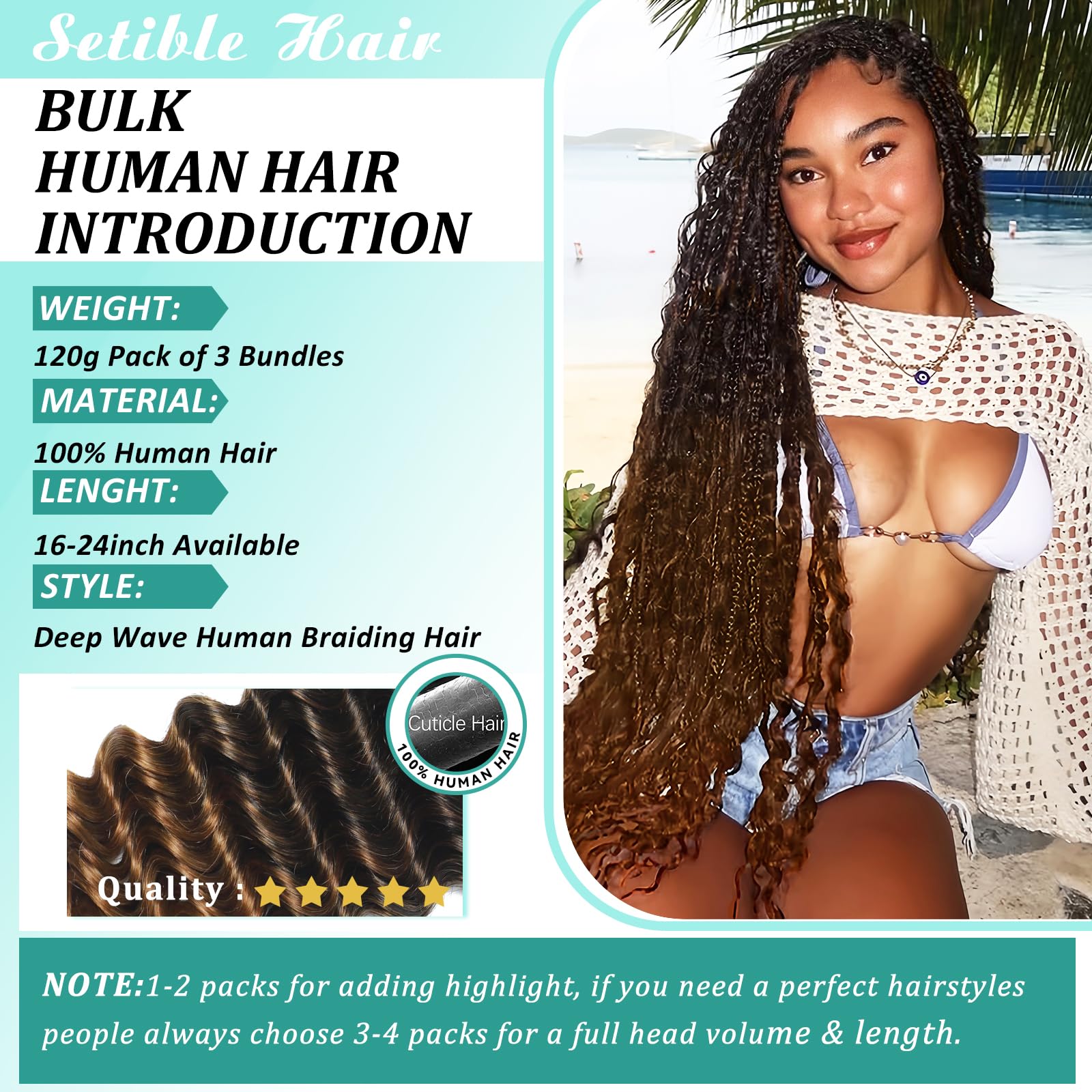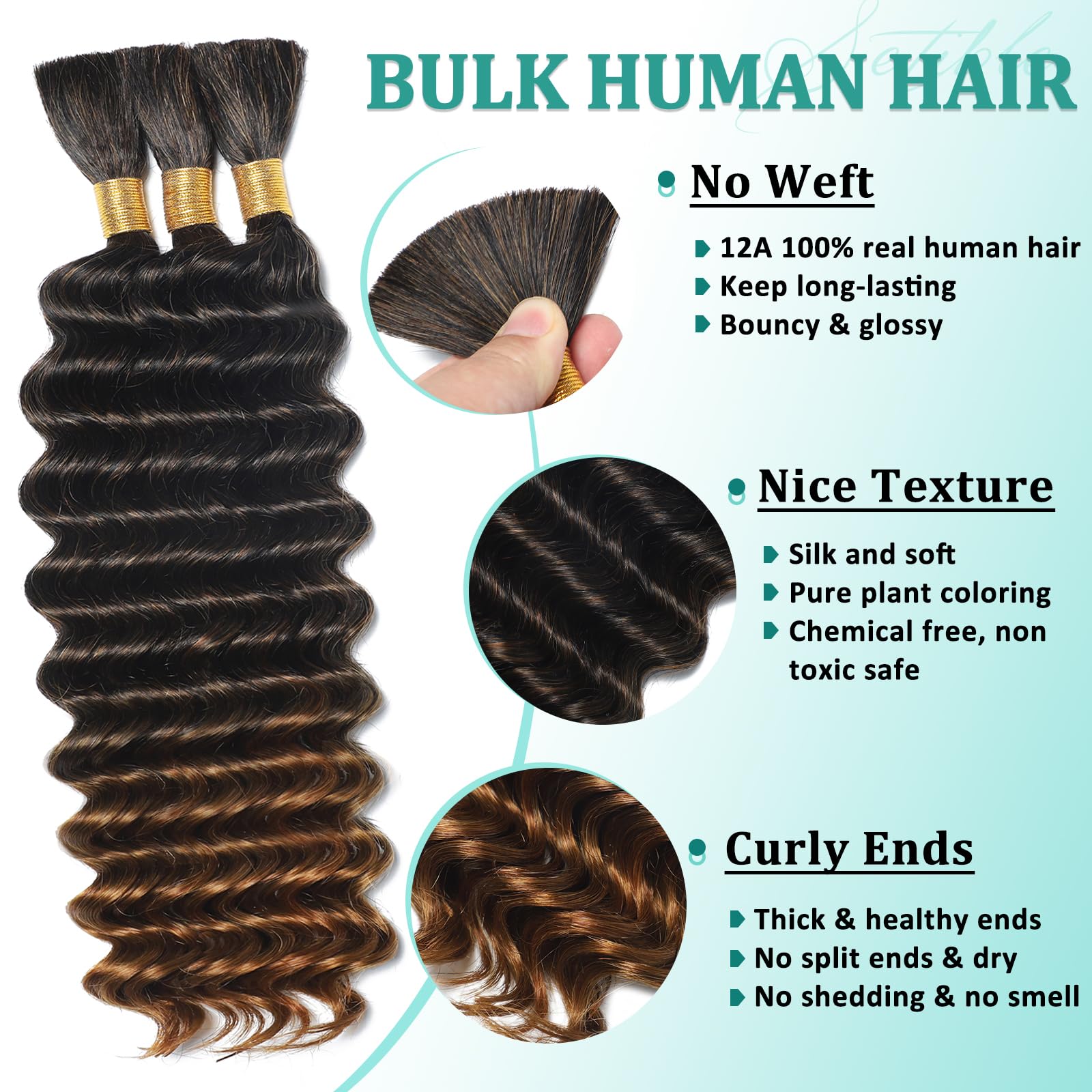 DIY Versatile Styling: Our Water Wave bulk human hair is no weft, with unmatched versatility, ideal for knotless braids, bohemian crochet braids, and boho Locs,our deep wave bulk hair adds length and volume to your hair. Available in 14-24 inches with popular colors: solid, balayage, highlights and ombre for trendy, head-turning looks.