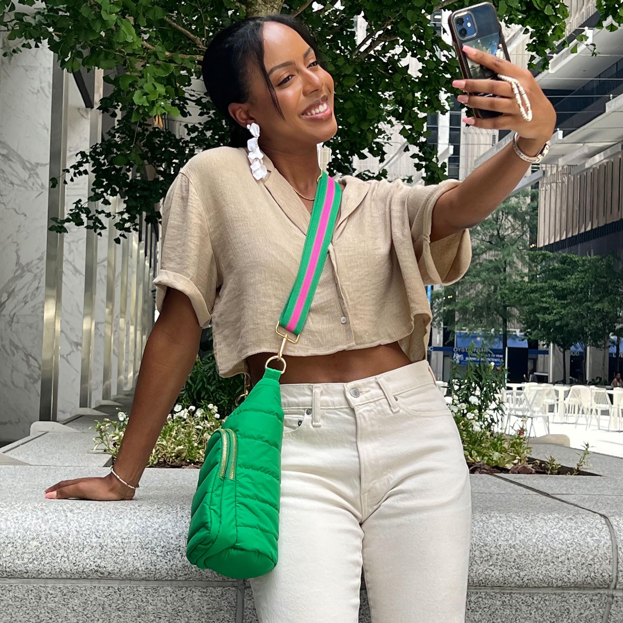 QUALITY MATERIAL AND CONSTRUCTION: Women owned American company which doesn't skimp on quality. Made w/ lightweight, soft, and durable fabric, the stylish quilted design & adjustable strap make this a must-have accessory & a fabulous gift for her.