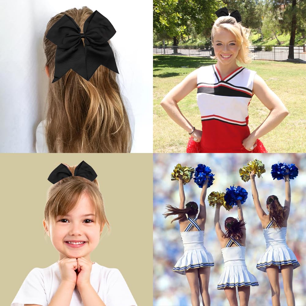 Great quality: 2pcs jumbo 8 inch hair bows for girls are made of high quality 3 inch wide grosgrain ribbon with elastic ponytail holder, light weight about 12g/pc, 100% handmade cheer bows with beautiful shape, the workmanship is excellent, the bow and the hair ties are well glued, and you don't have to worry about falling off, they stay in the ponytail well, girls can jump and shout when they wear it.girls bows for hair, is a favorite hair accessory for all teen girls.