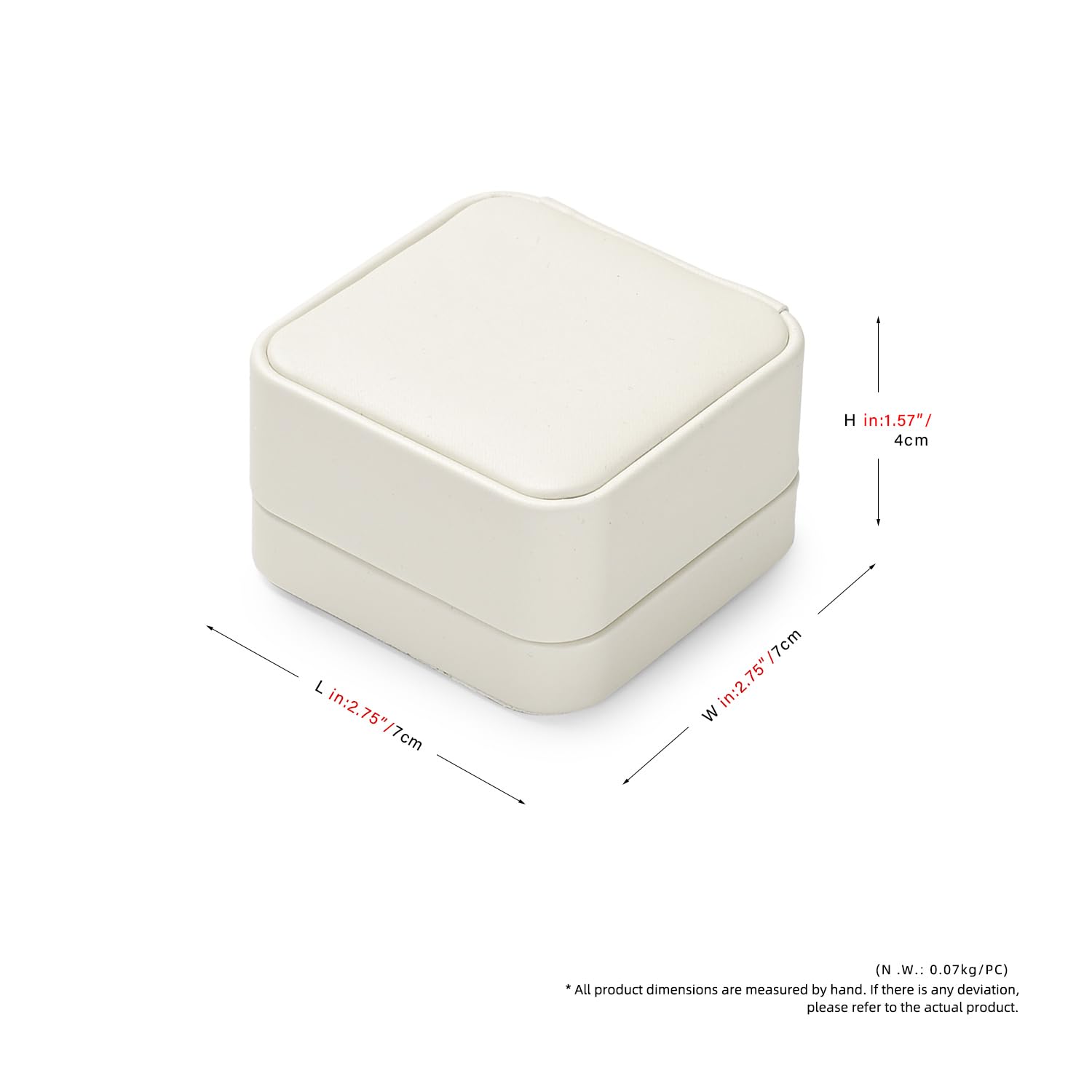Overall Size: 2.75"L x 2.75"W x 1.57"H/ 7 x 7 x 4CM;This earring gift box has a large spot underneath the built-in divider for stud rings.