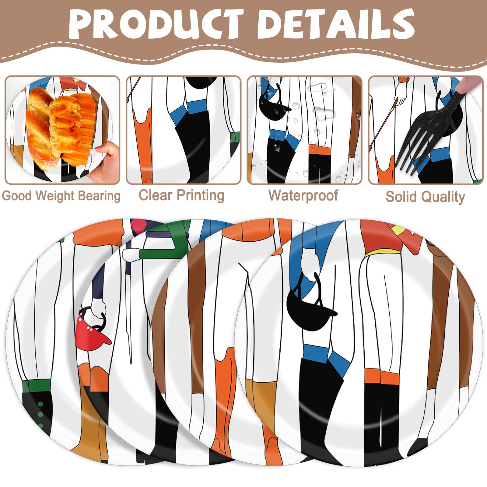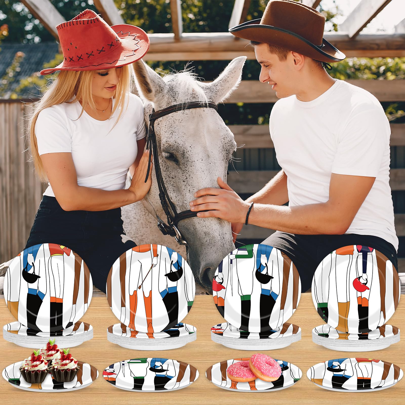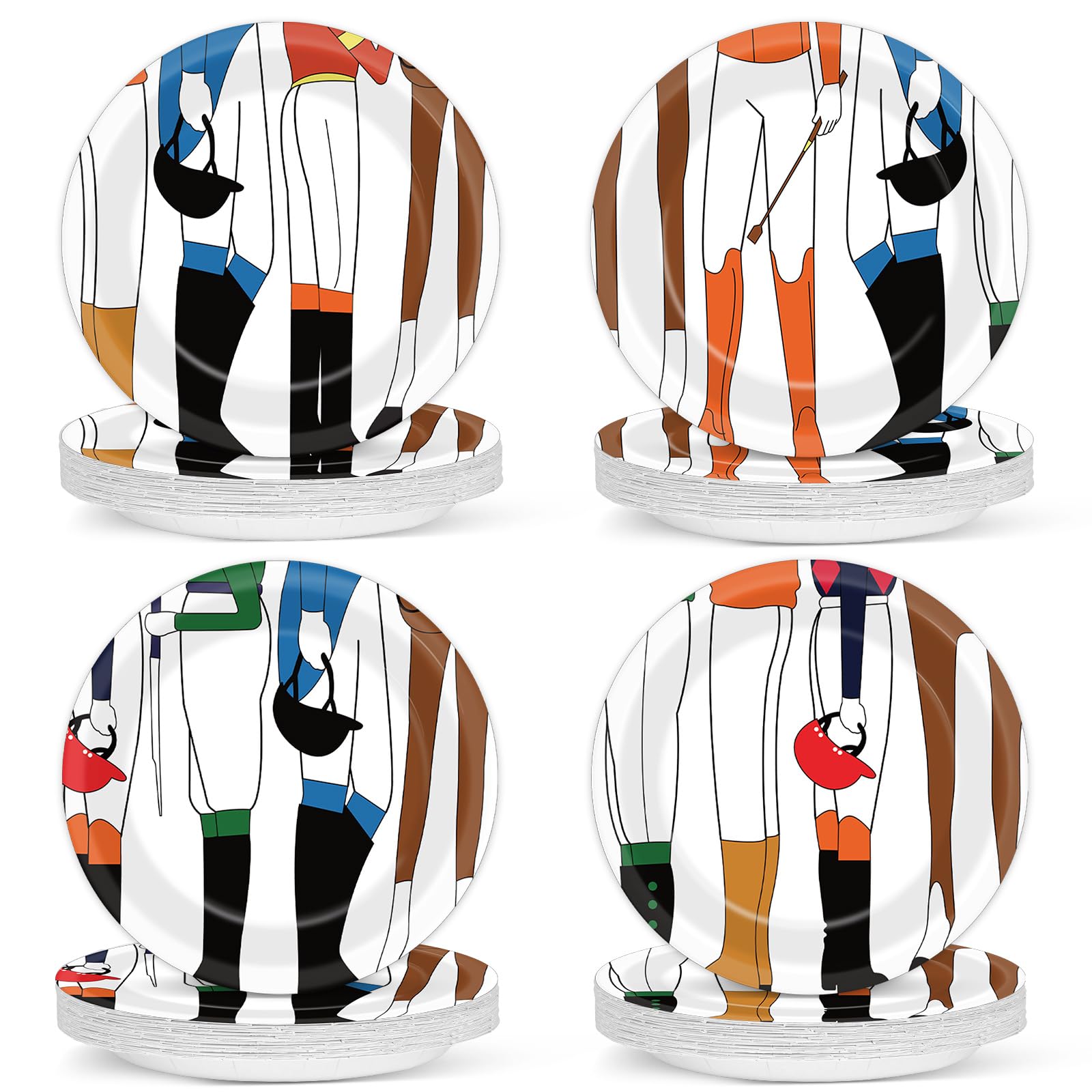 Derby day party supplies:The horse racing jockey with horse legs party plate set includes a total of 48 pieces of tableware. These horse racing dinner plates can easily accommodate up to 48guests for your events and satisfy various party needs.